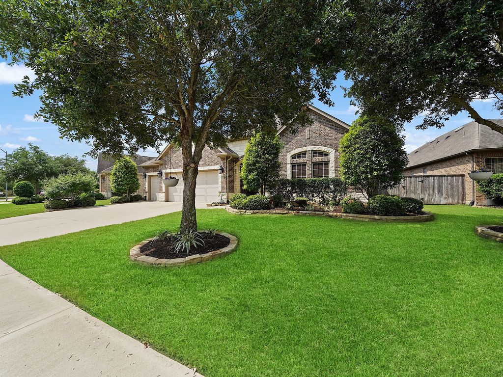 Nestled in the desirable Cinco Ranch community, this stunning home offers a blend of comfort, style, and functionality. Freshly painted interiors and meticulously cleaned tile flooring create an inviting ambiance. Boasting two primary bedrooms with spa-like ensuite bathrooms, this residence provides unparalleled relaxation. A spacious, versatile office caters to various needs, while the open-concept living area seamlessly connects to the gourmet island kitchen, complete with granite countertops and stainless steel appliances. Enjoy outdoor living on the ceramic-tiled front and back patios, with an extended covered patio in the backyard. The idyllic backyard is a landscaped masterpiece with vibrant flower beds and enchanting nighttime lighting. Abundant storage solutions, including a 'Texas Basement,' cater to all your organizational needs. The property features a three-car garage with an epoxy finish. Close to numerous amenities, including parks, tennis courts, and swimming pools!