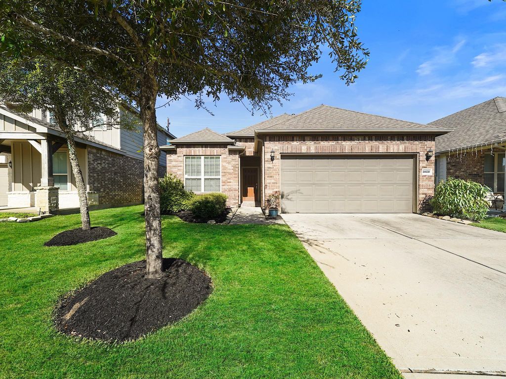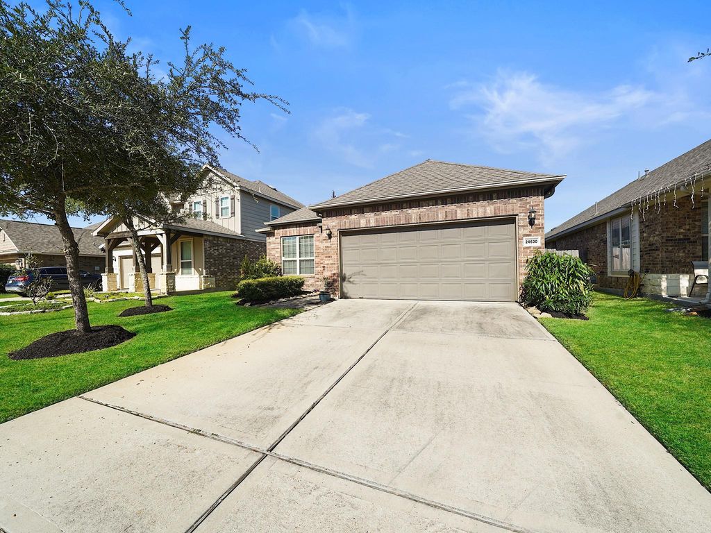 Experience comfort, convenience, and community living in this welcoming 3-bedroom, 2-bath home with a dedicated study and no back neighbors. The open-concept layout invites gatherings, offering a spacious island kitchen and light-filled living area designed for everyday connection. Your luxurious primary retreat features a curved wall of windows and a spa-inspired ensuite with a soaking tub, separate shower, and dual sinks. Two secondary bedrooms provide peaceful spaces for family, guests, or hobbies, including one with charming built-in shelving. The spacious backyard extends your living outdoors with an extended cobblestone partially covered patio ideal for hosting friends, savoring your morning coffee, or unwinding in the shade. King Crossing’s community pool, playgrounds, and parks complete the everyday lifestyle you’ll love.