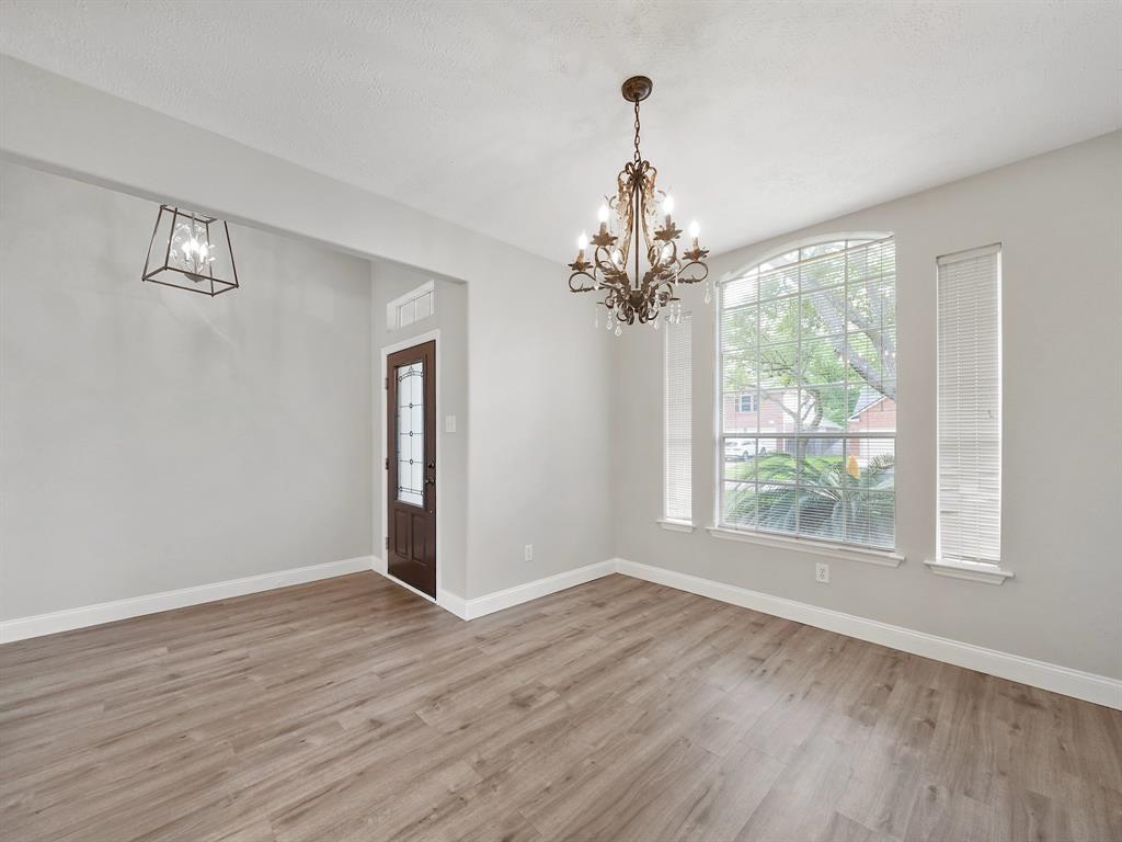 Charming 4-bedroom, 2-bathroom home in the highly desirable New Territory community! Boasting exceptional curb appeal with lush landscaping. Step inside to discover a thoughtfully upgraded interior featuring elegant vinyl plank flooring throughout the main living areas and bedrooms, complemented by soft, soothing tones that create a sense of tranquility. The formal dining room, conveniently located off the entrance, sets the stage for memorable gatherings. A seamless passthrough entryway leads to the light and bright kitchen, complete with quartz countertops, a stylish subway tile backsplash, and a spacious pantry. Enjoy casual meals in the adjacent breakfast area, or relax in the expansive living room with its inviting fireplace focal point. Retreat to the primary suite, featuring a spa-like ensuite for ultimate relaxation. Three additional bedrooms provide ample space for family or guests. Outside there's a large backyard with a patio. Washer and drier included.