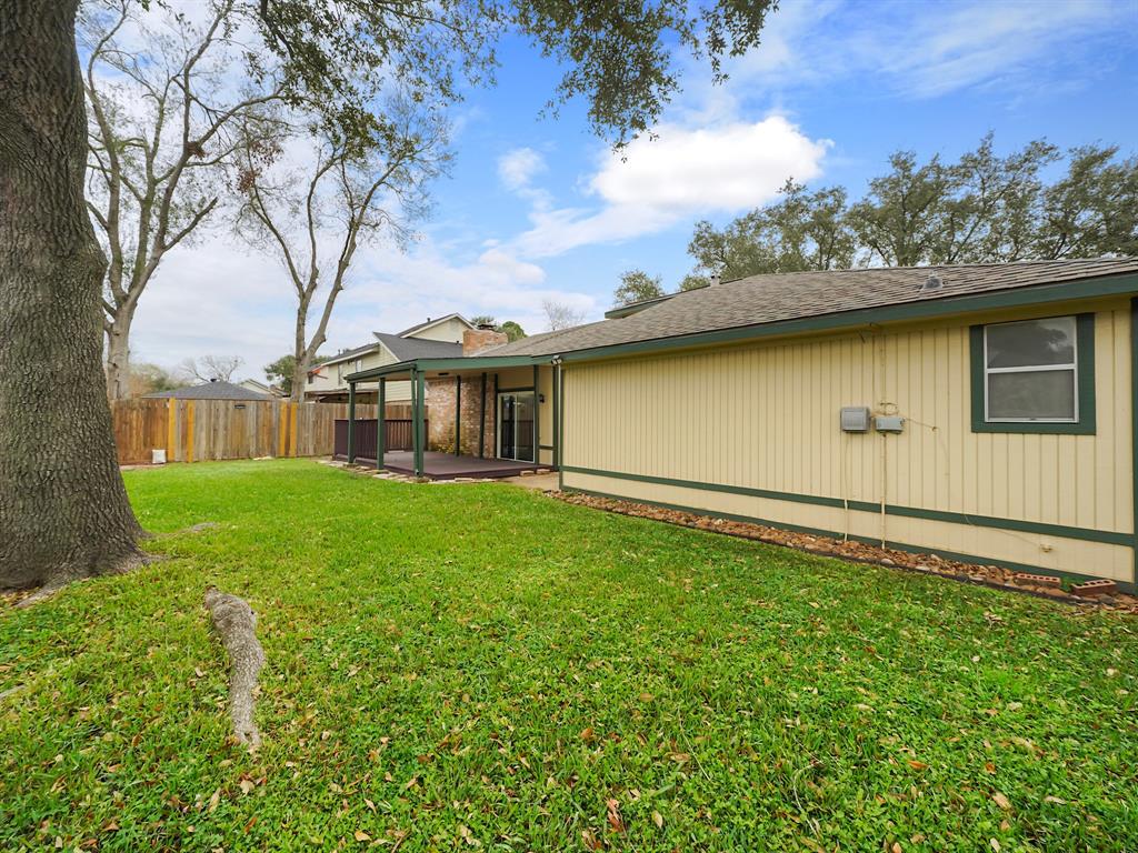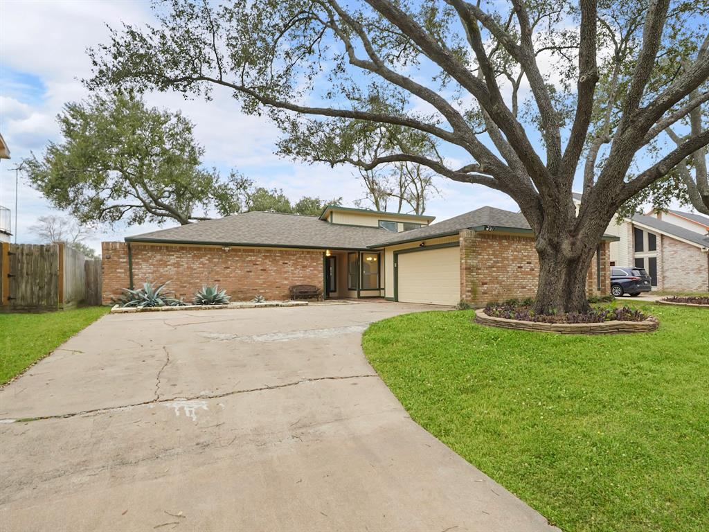 Stunning 3 bed/2 bath residence. Roof replaced in 2020, AC/heater 2018, Electric Box w/ Generator plug 2021, PEX plumbing 2018, Dishwasher 2024. Discover a freshly painted interior, where a gorgeous living room awaits, featuring vaulted ceilings & clerestory windows that fill the space with natural light. The inviting brick fireplace, flanked by built-in shelves, adds a touch of charm. The open-concept design seamlessly connects the living area to the kitchen, showcasing white cabinets and sleek stainless steel appliances. Host gatherings in the large formal dining area or enjoy outdoor living on the expansive patio, perfect for grilling and entertaining under the shade of mature trees. Retreat to the primary suite, complete with a vaulted ceiling, updated ensuite bathroom, and spacious walk-in closet. Washer and dryer included! Large backyard with extended partially covered patio! Experience the convenience of being close to a variety of amenities, dining, and entertainment options.