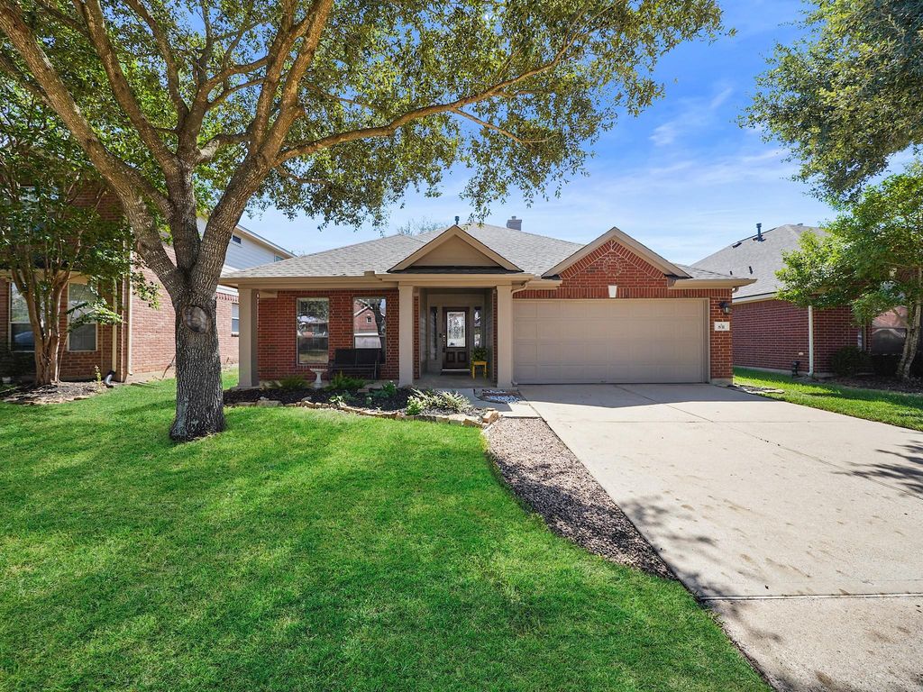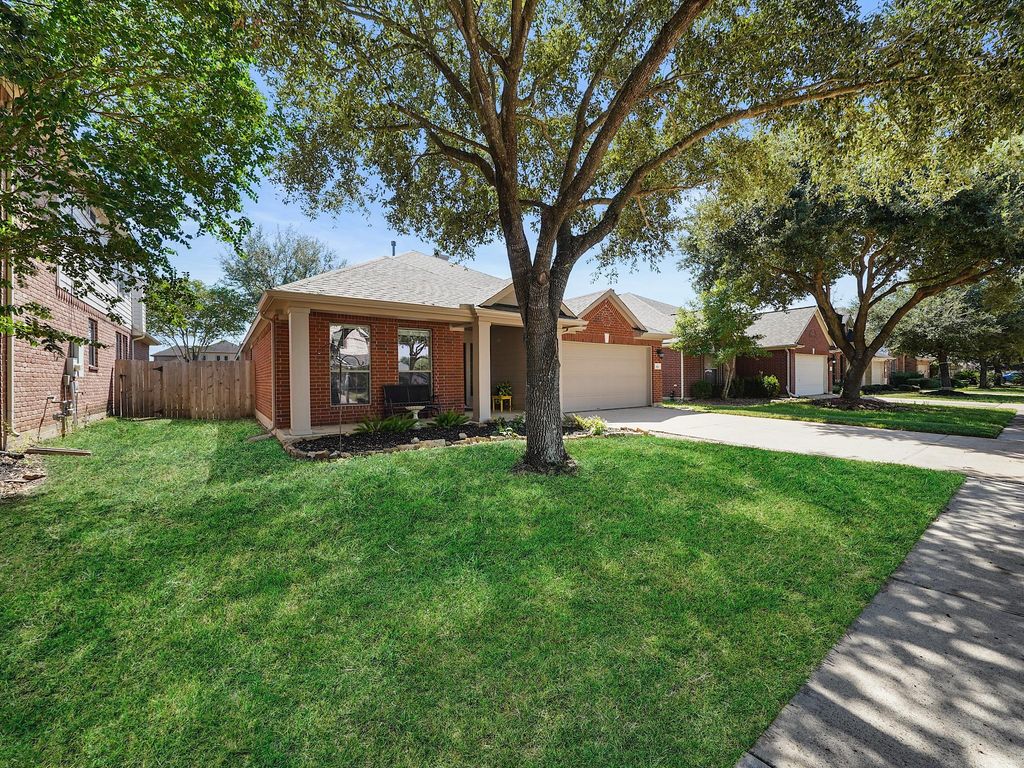 Beautiful one-story home in Falcon Rock offering 3 bedrooms, 2 bathrooms, and over 2,000 sq ft of comfortable living space. Wide plank polyurethane oak floors flow throughout the open design, while foam insulation helps greatly reduce energy costs and outside noise. Updates include a freshly painted interior, new roof (2025), HVAC less than 2 years old, water heater less than 5 years old, and a dishwasher less than a year old. The spacious living room features crown molding and a passthrough fireplace that connects to the dining space. The kitchen is equipped with granite countertops, abundant cabinetry, and a bright breakfast area with bay window. The private primary suite offers high ceilings and an ensuite with dual vanities, soaking tub, and separate shower. Secondary bedrooms are generously sized, while flexible spaces allow for dining, office, or playroom use. A shaded patio and backyard with mature trees complete this inviting home near shopping, dining, and Katy ISD schools.