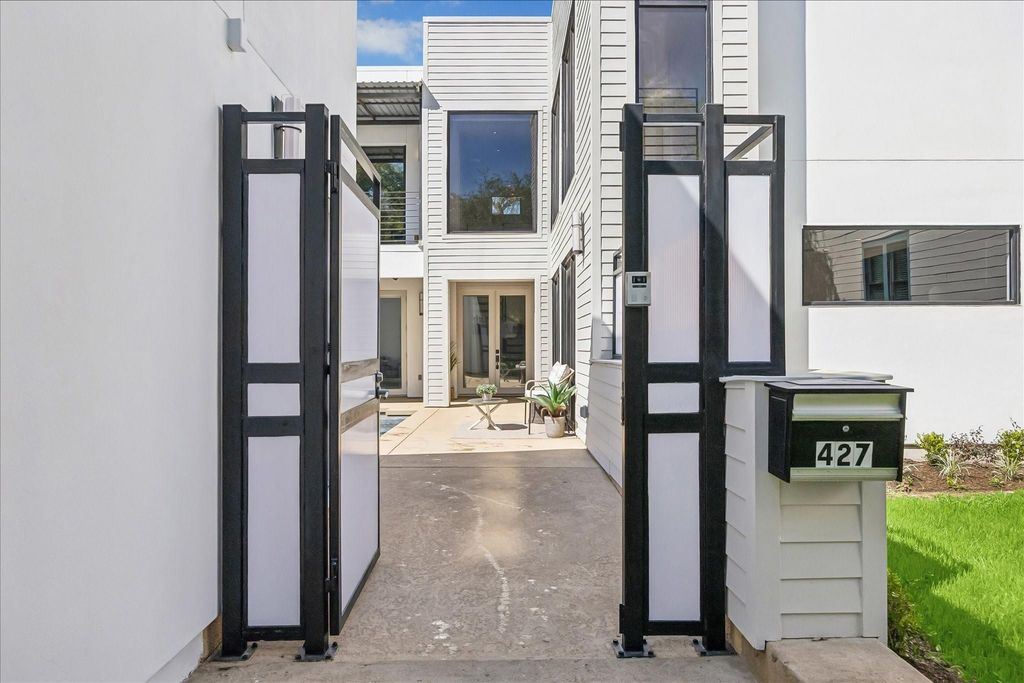 Experience striking modern design in this exceptional Heights residence, situated on a sizeable 6,550 sqft lot. Anchored around a charming courtyard pool, the home bathes in natural light beaming from the floor-to-ceiling windows, creating a seamless indoor-outdoor living experience rarely seen. The first floor features an open-concept living room, kitchen with island seating, and a spacious family room/den all with direct pool views, ideal for both everyday comforts and elevated entertaining. Enjoy multiple outdoor spaces including a rooftop deck and a generous back yard, the scale of which is rarely found in the Heights. All bedrooms are located on the second floor. The primary suite features massive floor to ceiling windows with a private balcony and scenic pool views. Additional highlights include a private double-wide driveway with gated entry & EV charger. Ideally located just moments from the Heights Hike & Bike Trail and near premier dining, retail, and neighborhood amenities.