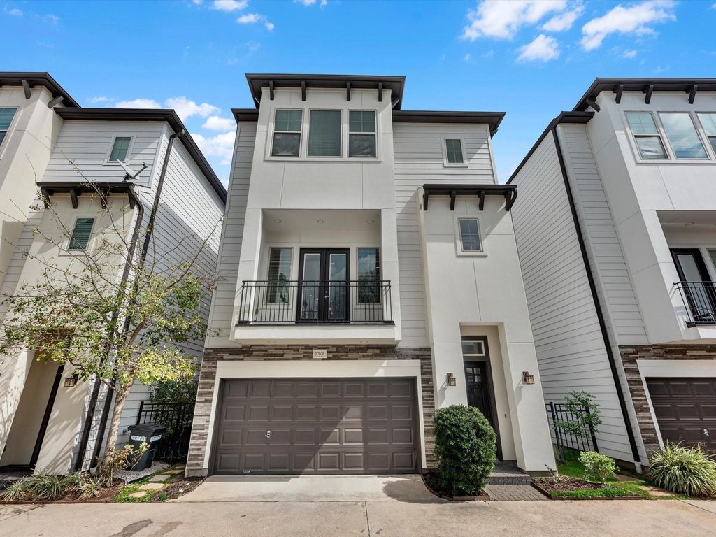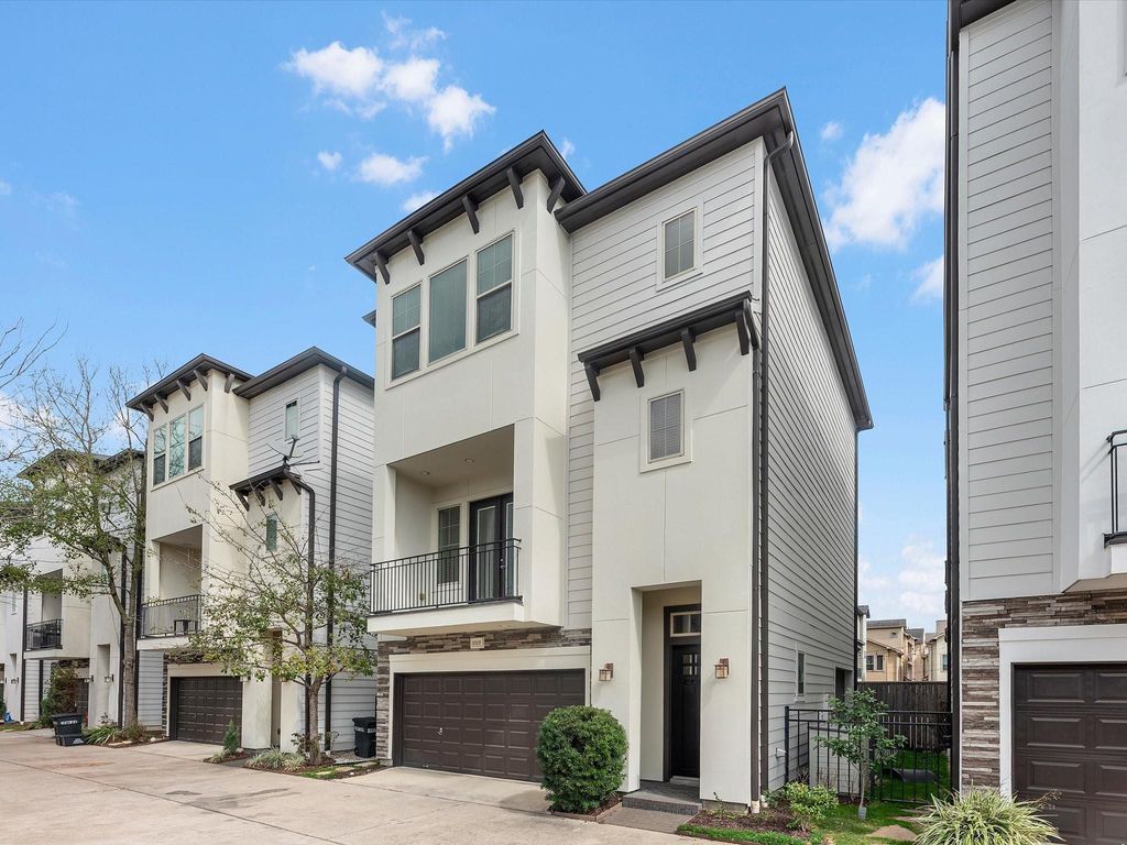 Your home awaits in the heart of Shady Acres in this gated enclave designed for easy lock-and-leave living! Natural light pours into the open second floor living and dining spaces, enhanced by unobstructed views on both sides. Just off the family room is the balcony, refinished in 2025, with a gas hookup ready for grilling nights with friends. The home chef/baker will be delighted with the Bosch gas range (2024) and Bosch dishwasher (2020). A spacious primary suite offers an oversized walk in closet. Downstairs, off the first floor bedroom is an enclosed yard with covered patio, the yard extending to the front of the house. Move-in ready updates include new wood flooring on the 1st floor (2026) and brand new carpet on the 3rd floor (2026). Low HOA includes water and private trash service. Extra guest parking available just steps outside. All just minutes from HEB, 610, and the best of The Heights.