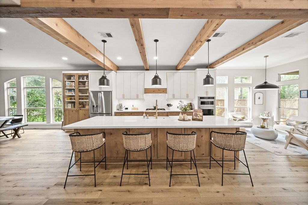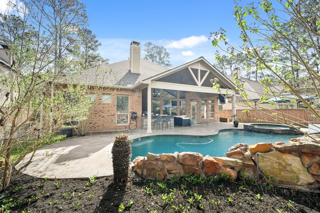 Exquisitely renovated 4-bedroom, 3.5-bath residence featuring a complete main-floor open-concept transformation designed for refined living & effortless entertaining. The gourmet kitchen is a showpiece with hand-crafted custom cabinetry, striking cedar beams, premium stainless appliances, & seamless flow into the inviting family room anchored by a custom stone fireplace with cedar mantle & shiplap feature wall. The serene primary suite offers a spa-caliber bath with oversized custom shower, designer tile, & bespoke cabinetry. Waterproof LVP flooring on the main level, with plush carpet upstairs, fresh interior paint (including garage), designer lighting throughout, and beautifully updated secondary baths. Significant upgrades include a new architectural roof (Feb 2026), 24kw whole-home generator, replaced AC and hot water tank (1 of each), garage door motor, updated sprinkler system, & smart pool controls. A resort-style outdoor kitchen, pool, & spa complete this exceptional property.