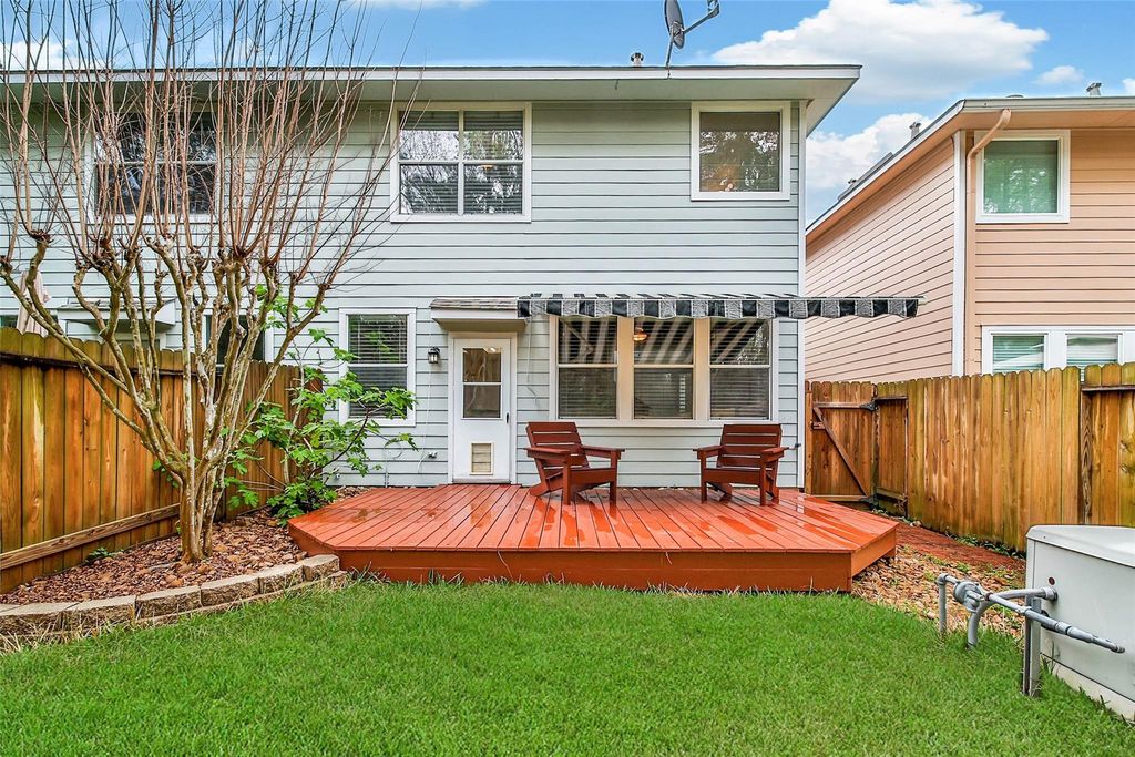 MOVE IN READY townhome in the Village of Sterling Ridge. Painted from top to bottom to get ready for new owners including walls, trim, doors, ceilings, closets, and all cabinets. Never be without power with the Generac whole home standby generator! This townhome lives like a dream, featuring the living room, breakfast room, and kitchen down, with three bedrooms, loft, and laundry up. The kitchen features granite countertops, stainless steel appliances, a breakfast bar, and a ton of storage with ample cabinet space and two pantries! Upstairs the primary features an ensuite bath with dual sinks, separate garden tub and shower, and a huge walk-in closet. The loft space is perfect for a home office, video game set up, or a reading nook. Out back is a recently refinished deck with a retractable awning that offers great shade. The home backs to a greenbelt with no back neighbors. Amazing location--Walk/ride to C. Tough Elementary, TWHS 9th Grade Campus, Library, YMCA, local parks, and more.