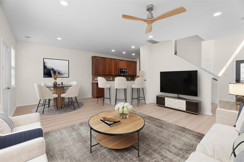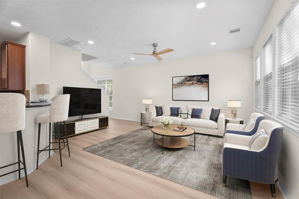 Beautifully updated townhouse, perfectly nestled in a quiet cul-de-sac along a beautiful greenbelt in the Woodlands with NO BACK NEIGHBORS. This freshly painted 3 bedrooms, 2.5 bath, 2 car garage gem boasts a thoughtfully designed main floor, where the family room, kitchen, dining area & powder bath all flow together. This home is drenched in sunlight, has new luxury vinyl floors, is freshly painted, has new modern ceiling fans & new recessed lighting. The kitchen offers bar seating, a dining area & 2 pantries! Upstairs are 3 bedrooms, 2 full baths plus a flex space for your home office. The primary bedroom has a great walk-in closet + an ensuite with double sinks, soaking tub & separate shower. Step outside to your charming, fenced backyard with sprinkler system & scenic walking paths nearby. A floor plan, the top reasons why you’ll fall in love with this home & recent updates are attached. Come enjoy all the Woodlands has to offer - shopping, dining, concerts, events & more.