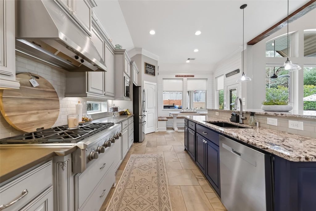 This former model home is a showcase of luxury, craftsmanship, and thoughtful design. This five bedrooms and four full bathroom spans over 3,600 sq feet. This home is designed to entertain, and the backyard is show stopping. Enjoy your outdoor kitchen including pizza oven, grill, griddle, 65" TV, and custom lighting. The in-ground pool creates a private resort-style retreat, perfect for relaxing or hosting unforgettable gatherings. Flex your hospitality while your guests watch the game from authentic seats from old Cowboys stadium, while you wine and dine them. Inside, the chef’s kitchen takes center stage, highlighted by a six-burner gas range, beautiful custom island, and stainless steel appliances throughout. The first floor offers completely carpet-free living, with beautiful hardwood floors in the study and primary suite. Upstairs is roomy with three large bedrooms and a grand entertainment room. This home perfectly blends luxury, functionality, and appeal. Agent is also seller.