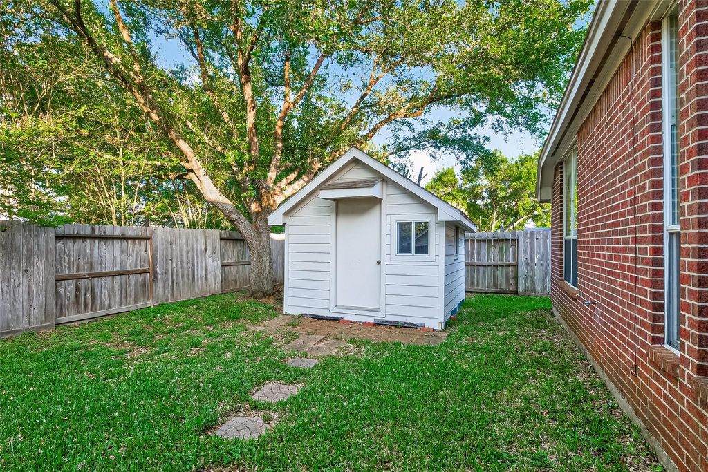 All Ambassador Management Group residents are enrolled in the Resident Benefits Package. Located in a desirable manned-gated community, this beautiful one-story 3-bedroom, 2.5-bath home offers great curb appeal and a welcoming covered front porch entry. Inside, you’ll find formal living and dining areas at the front—perfect for entertaining. The spacious kitchen features a huge island, ample counter space, and opens to the family room for easy everyday living.Two secondary bedrooms share a full hallway bath, while the private primary retreat is tucked behind the family room and includes an updated bathroom with double sinks. A convenient half bath adds extra functionality for guests.Enjoy outdoor living on the covered patio with an easy-to-maintain backyard and a storage shed for added space. Fantastic location with quick access to Grand Parkway (99) and I-10, plus shopping and dining nearby. This one won’t last—schedule your showing today!