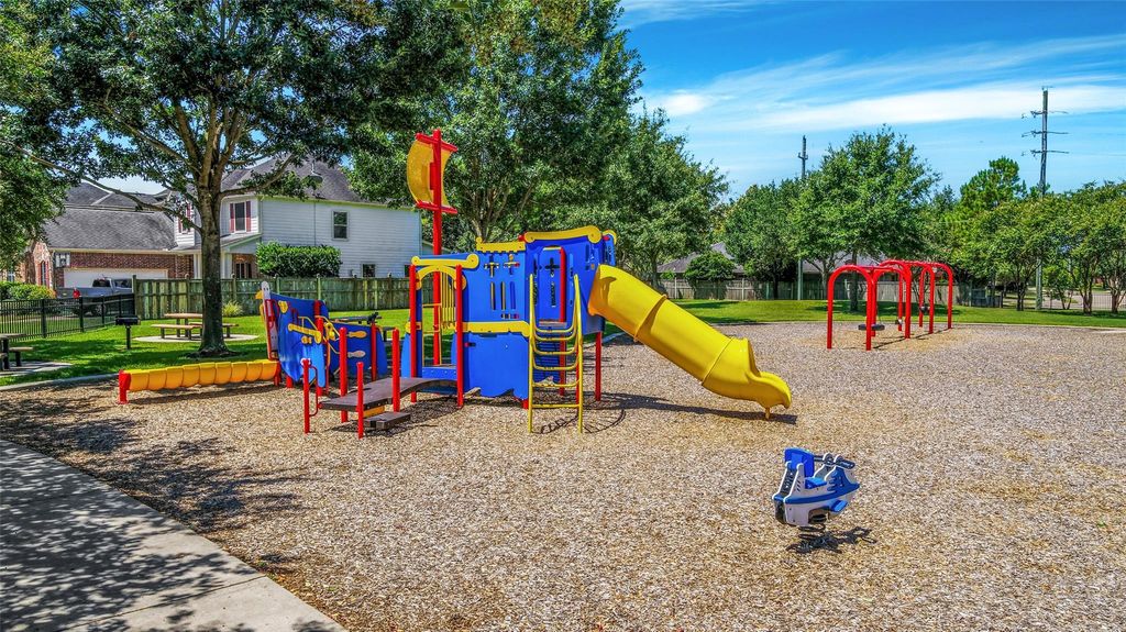 Discover this stunning former Trendmaker model home in the highly desirable master-planned community of Grand Lakes, just minutes from premier amenities, top-rated Katy ISD schools, and convenient access to Westpark Tollway and Grand Parkway (99). This beautifully upgraded 1-story features 3 bedrooms, 2.5 baths, and a thoughtfully designed open layout with zero carpet, showcasing rich hardwood flooring in the main living areas and wood laminate in the bedrooms. The island kitchen impresses with black granite countertops, 42-inch white cabinetry, and a breakfast bar that opens seamlessly to the formal dining room and spacious living area. Two secondary bedrooms share a Jack-and-Jill bath, along with a convenient half bath for guests. Don't miss the hidden room behind custom bookshelves adding unique character and extra storage! Step outside to the extended, remodeled patio—an ideal outdoor retreat for relaxing or entertaining. Schedule your private showing today!