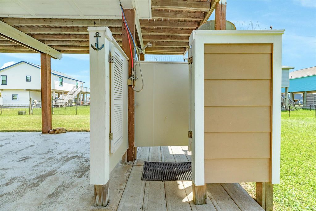 Adorable 2 bedroom 2 bath beach cottage with beach views located in the Terramar Community. AC inside and outside replaced in July 2025 including duct work, $14,000 in Air Conditioner updates. This home includes nice south facing covered patio space under house to enjoy gulf sounds and breezes. Enter from large covered deck into open concept living, dining and kitchen. Dining space includes extra seating from large breakfast bar. Kitchen includes all appliances. Ceilings with sky lights that bring in natural light. Comfortable 2 bedrooms with 2 baths with updates. Primary bedroom with en-suite bath. Would make great second home, short term rental. Terramar offers community pool, boat launch area, fishing, and community pavilion Easy walk or golf cart ride to beach. Restaurants nearby in Sea Isle and grocery store minutes away. Galveston shopping, restaurants and entertainment about a 15-20 minute drive. Great home to enjoy coastal living.