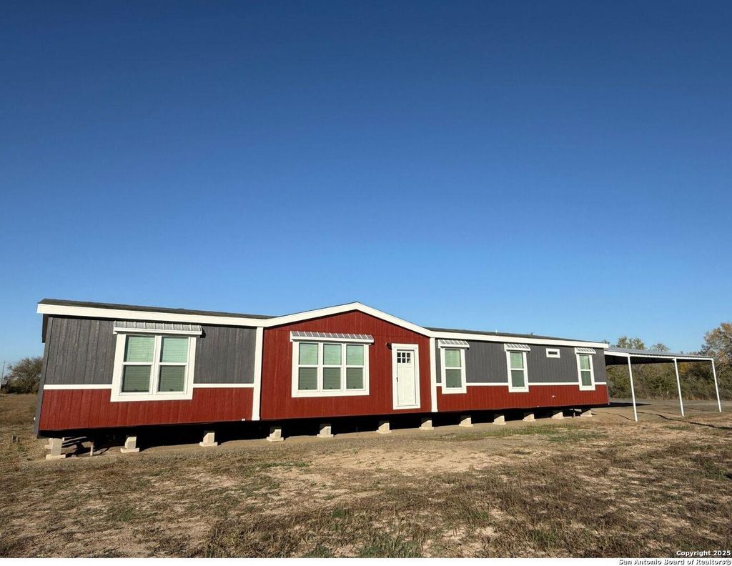 Newly constructed manufactured home in Knippa, TX featuring 5 bedrooms and 3 full baths on a half acre. This spacious residence features an open floor plan with an abundance of natural light and modern finishes throughout. The kitchen boasts contemporary cabinetry, generous counter space, and a center island ideal for entertaining. The private primary suite includes a well-appointed en-suite bath and ample closet storage. Two bedrooms have a Jack and Jill bathroom, ideal for siblings. The expansive lot offers ample space for outdoor activities, gardening, or future additions. Conveniently located 0.8 miles from Knippa ISD and 1.0 miles from Highway 90, with easy access to Uvalde and surrounding areas. Final touches are being done on the home; it is move-in ready and has room for your family to grow!
