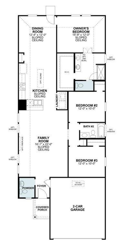• Central open-concept hub that joins the kitchen and family room for a social atmosphere