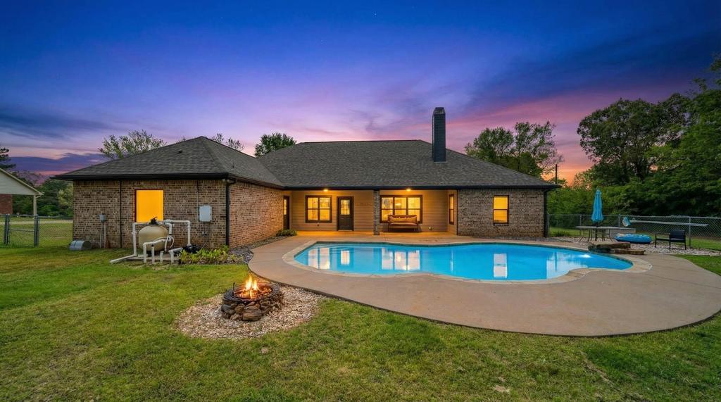 Spacious and inviting home in Harleton offering 4 bedrooms and 2.5 bathrooms, perfect for comfortable living and entertaining. Step inside to a large formal living room featuring a cozy fireplace, along with a formal dining room ideal for gatherings. The kitchen is well-appointed with granite countertops, ample cabinet space, and a convenient breakfast bar for casual dining. The primary suite provides a relaxing retreat with an ensuite bathroom that includes a built-in vanity, soaking tub, and a large walk-in closet. Enjoy outdoor living in the fenced backyard complete with a pool, patio area, and a storage building