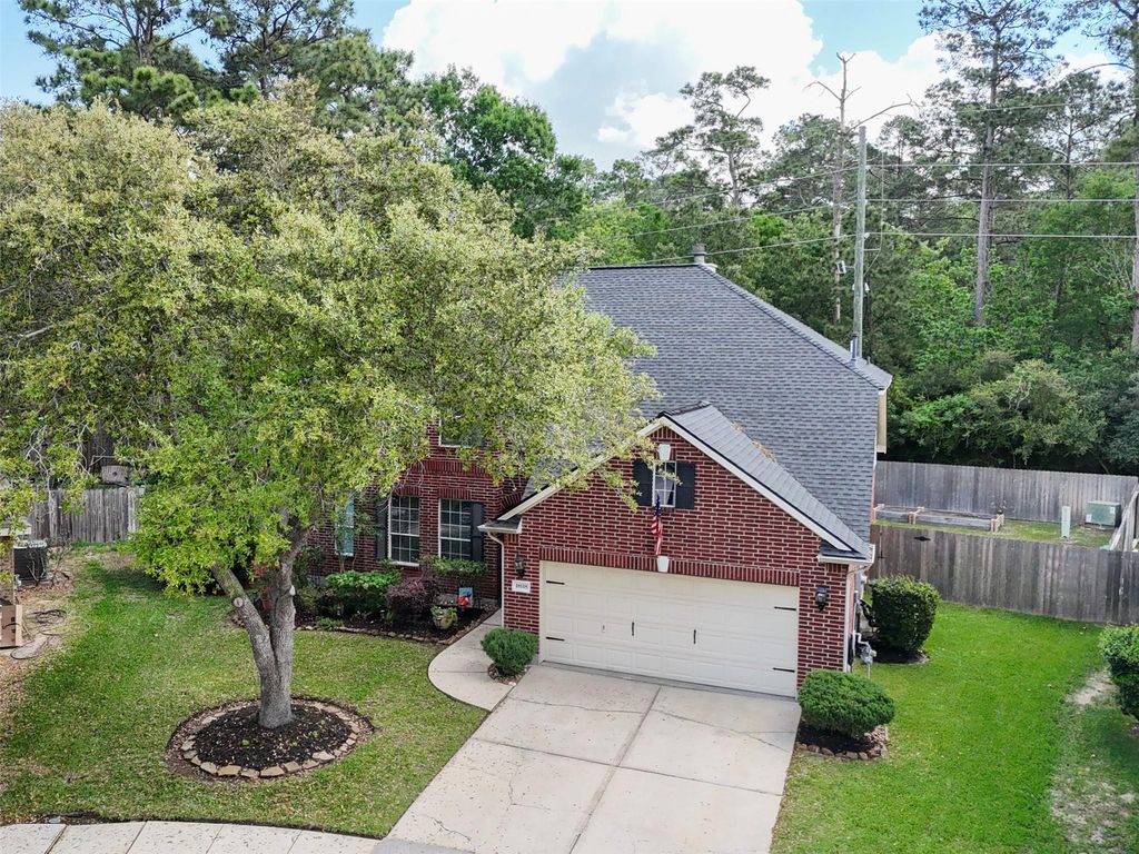 Immaculate and lovingly maintained home on huge cul de sac lot backing to wooded area for privacy... large rear covered patio, updated fence. Elegant and comfortable home with 4 bedrooms with primary suite on first floor with executive en suite bath. Large family room with 2 story ceiling and fireplace is open to large kitchen with breakfast bar and tons of cabinets for storage. Lots of windows in this home for plenty of natural light and to enjoy the view of the woods and trees. Formal dining down, butlers pantry with built in desk. Upstairs offers large game room/ optional media room plus 3 additional bedrooms and a full bath. Staircase with Iron railing, ceramic tile and beautiful hardwood flooring on first floor. Shiplap wall in master bedroom. Updated light fixtures, fresh interior paint, roof replaced March of 2022, Fence in January of 2025, Water heater replaced in 2024.