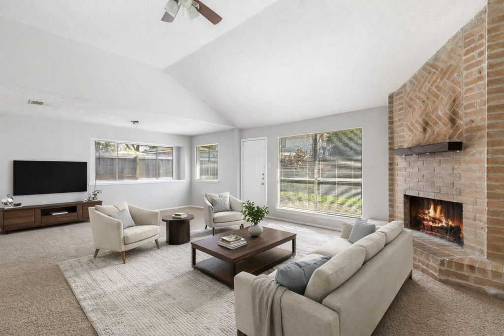 Well-maintained single-story home in Atascocita South offering a functional layout, vaulted ceilings, and a bright, open design ideal for everyday living and entertaining. The main living area features a corner gas log fireplace and flows seamlessly into the dining space and kitchen with breakfast bar seating, gas range, built-in microwave, and pantry. The spacious primary suite includes dual vanities, a tub/shower combination, and walk-in closet. Two secondary bedrooms provide flexibility for guests, a home office, or additional living space. Recent updates include interior paint, lighting, hardware, and plumbing fixtures. The fully fenced backyard and two-car attached garage add to the home’s overall functionality. Conveniently located near shopping, dining, and Lake Houston with easy access to major commuter routes. Ideal for both homeowners and investors, with the opportunity to purchase as part of a two-property portfolio.