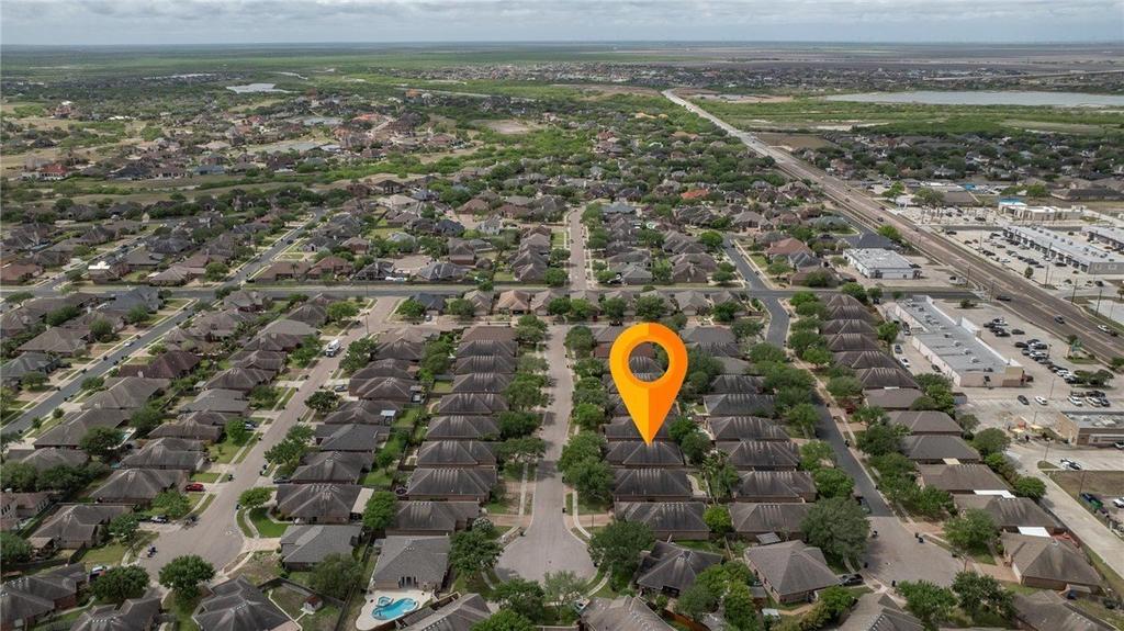 Beautiful open-concept garden/patio home with gated courtyard entrance in popular Kings Crossing subdivision. These highly desirable garden homes rarely come on the market! This well-maintained home features very large covered patio, visible from the kitchen and dining areas, providing an abundance of natural light and the perfect indoor/outdoor connection. Graceful archway over breakfast bar highlights the spacious living room. French doors at one end of the living room offer views of the open patio. Neutral paint tones pair perfectly with large tile flooring in the living, dining, kitchen, hallways, and baths. Crown moulding throughout most of the home. The gorgeous kitchen offers custom wood cabinetry, sleek granite countertops (including a breakfast bar for casual dining), a tile backsplash, Kitchen-aid double ovens, vent hood and large pantry with double doors. You''ll also appreciate the raised dishwasher for added convenience.The split-bedroom layout provides privacy, with the primary suite tucked off the living room. The spacious primary bath includes dual lavatories and a tiled walk-in shower with beach-entry design, glass block wall and window providing natural light. Large walk-in closet features double doors, built-ins, and great storage. Secondary bedrooms are located at the opposite end of the home near the roomy laundry area. Storage is abundant throughout. Outside, enjoy an easy-to-maintain yard with mature crepe myrtle trees and landscaping-ideal for gardening and giving pets room to roam. The oversized covered patio is perfect for morning coffee, evening cocktails, or entertaining. Additional patio off the living room is another great spot for enjoying a cozy fire pit or cool breezes. Windows have hurricane screens and French door has an electric storm shutter adding to the security. No need to board up for storms. Located near restaurants, shopping, movie theater and approx 20-minute drive to Padre Island beaches and the warm Gu