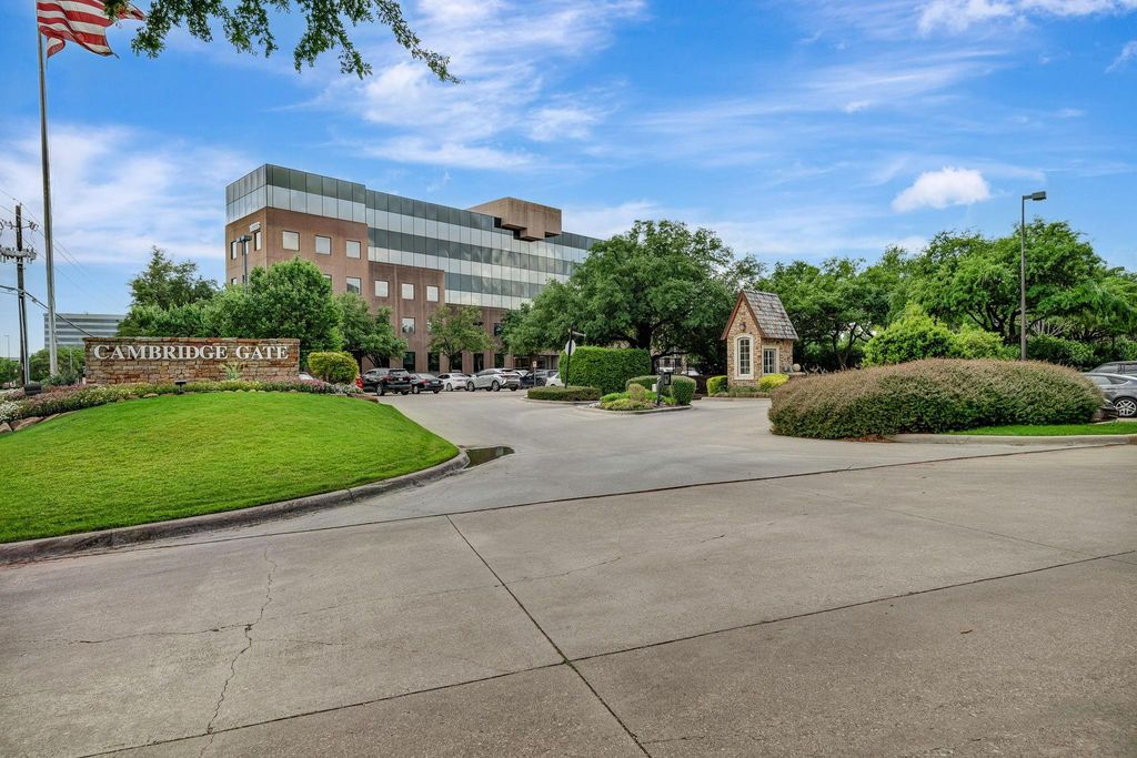 Beautiful home in the charming, ultra-private, exquisitely landscaped and gated community of Cambridge Gate. Discover luxury living and an elevated lifestyle. This home features sweeping roof lines with sky-high ceilings, lots of natural light, corner stacked-stone fireplace and mantle, graceful arches and built-ins. Plantation shutters over the wall of windows in the living area and throughout the home. The open floor plan flows the kitchen, dining and living room together to create a space you won’t want to leave. The kitchen is exquisite with its large island, SS appliances, smooth high-end stovetop, built-in masterpiece refrigerator, walls of cabinets, granite countertops, double skylights, and plenty of room for a breakfast table. Large pantry and laundry room are around the corner. Just down the hallway, you will find additional storage, a beverage bar with a wine or water refrigerator, a guest or flex room with full bath. Continue to the tranquil primary suite where you can relax and unwind in the spa-like bathroom with spacious shower, double vanity and large custom closet. Enjoy the private covered patio and outdoor space leading to the side yard, great for outdoor dining, lounge chairs and seating surrounded by trees and beautiful landscaping. The office is situated conveniently at the front of the home. The oversized third bedroom upstairs includes its own private bathroom and large closet. Updated with energy efficient windows throughout the home. Garage includes 2 Tesla car chargers. Great location just minutes from GB190 and DNT Tollway, Preston-Park shopping and dining. Plano schools and several private schools nearby. Truly, a rare & unique home and neighborhood. A Must See!
