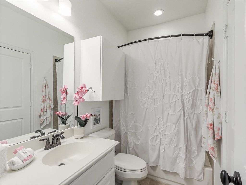 This home isn’t just updated—it’s dialed in. Every major system, finish, & feature has been thoughtfully upgraded to deliver a fully integrated, modern living experience. The backyard is the showstopper, featuring a resort-style pool with PebbleTec finish, in-floor automatic cleaning system, spa, and fire pit—all fully app-controlled. Outdoor living is elevated with a cedar patio cover, Haiku smart fan, Yamaha outdoor speakers, & low-maintenance turf surrounding the pool equipment. Inside, the upgrades continue with smart lighting, fans, thermostats with added sensors, & a full 4K security camera system. The home is equipped with smart locks, a smart doorbell, Rachio sprinkler controller, & upgraded garage door openers with app control and Amazon delivery capability. A Culligan whole-house water filtration system, water softener, and reverse osmosis system at the kitchen sink ensure top-tier water quality throughout. Major mechanical updates include a new roof (2025) & a Navien NPE250A2 tankless water heater (2025). The garage is fully optimized with custom cabinetry, overhead storage, upgraded springs (2025), & even an electric bike winch system. Interior enhancements include fresh paint throughout most of the home, new high-end light fixtures by Tappen Interiors, & custom hallway molding with upgraded lighting. The living space is anchored by a beautifully updated whitewashed brick fireplace with new mantel & logs. Upstairs, you’ll find a built-out bar area & a fully outfitted home theater—complete with premium seating. The primary suite features new carpet (2026) & a spa-like bath with an upgraded fan featuring a built-in Bluetooth speaker. A new wine fridge (2025) adds a final touch of luxury. Even the exterior details are handled, with a newly added front flower bed retaining wall (2025) & LED landscape lighting conversion. This is not a “recently updated” home—it’s a fully upgraded, smart-integrated property built for comfort, efficiency, a