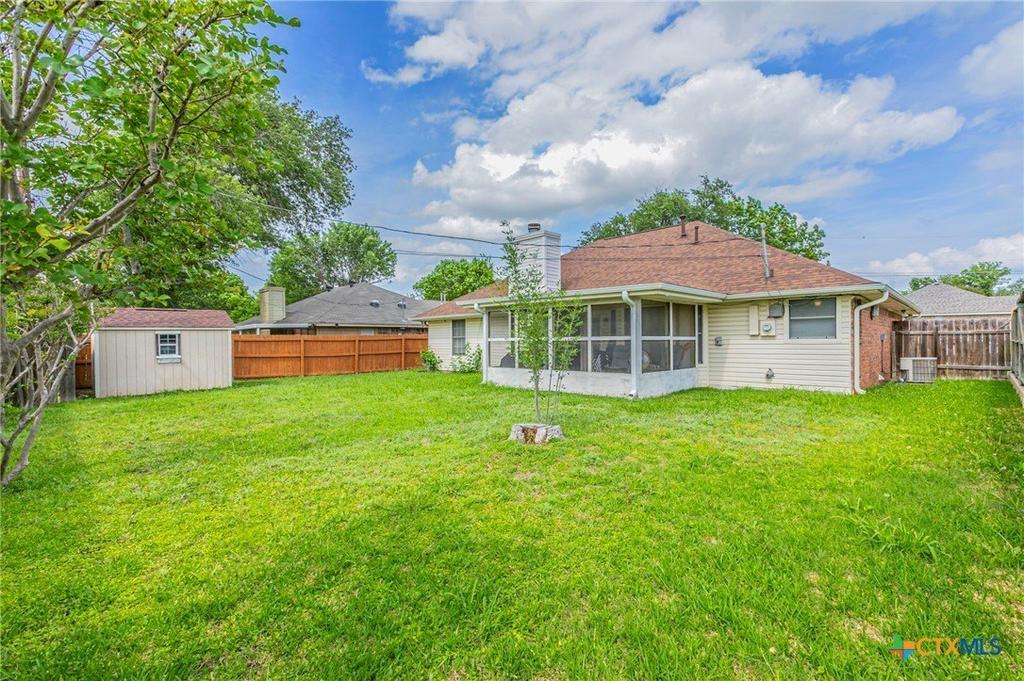 Brick 3-bed, 2-bath home in an established Temple neighborhood with quick access to IH-35-ideal for commuters. Conveniently located near shopping, dining, schools, and Baylor Scott & White. Inside features luxury vinyl plank flooring in main areas and primary suite, with carpet in secondary bedrooms. The living room offers a trayed ceiling and wood-burning fireplace. The kitchen includes a gas range, vent hood, and ample cabinetry, flowing into a bright dining area with bay window overlooking a private, tree-shaded backyard. The primary suite has two walk-in closets and an en suite bath with double vanity and shower. Two additional bedrooms and a full bath offer flexibility. Enjoy a screened-in patio, fenced yard, sprinkler system, and storage shed. Great value-perfect for first-time buyers, downsizers, or investors. Call your realtor for a showing today.