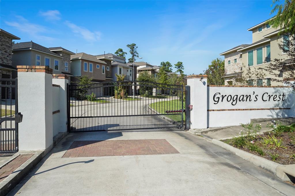 This Stunning 3 bedroom, 3.5 bath patio home is ideally located in the coveted gated community of Grogan's Crest. The finishes and upgrades set this home apart, such as built in wine rack, upgraded lighting, plush carpet upstairs, luxury plank vinyl down, and soaring ceilings. The kitchen offers upgraded KitchenAid appliances, granite counter tops, soft gray cabinetry and recessed lighting. The master suite has a Juliet balcony and En-suite bath with garden tub & separate shower. The garage floor has an epoxy coating finish. The private back patio overlooks the greenbelt and the beautiful community pool is just out front. This is a great lock & leave home for business traveler or a great 2nd home. Schedule your private viewing today.