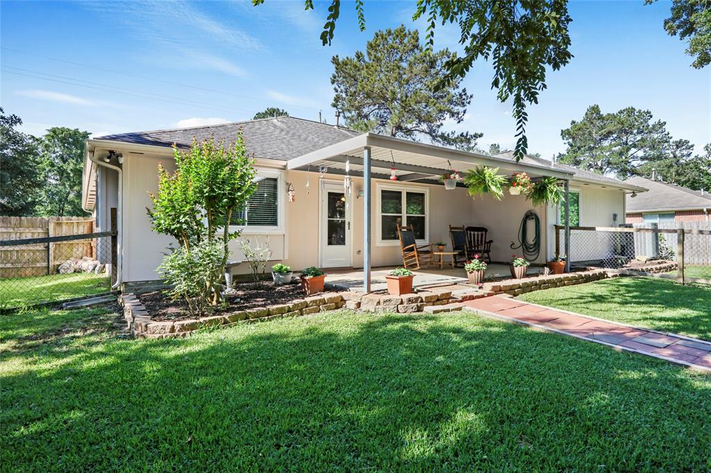 Super adorable Magnolia home in popular Woodland Oaks subdivision offers 4 bedrooms, 2 baths, an updated kitchen, huge pantry, covered patio, 12,000 sq ft lot with fruit trees and storage sheds. New Stainless Appliances in 2020, A/C upgraded & replaced 2013, New roof 2014 30 yr rated, New Double Pane windows in 2014, Primary bath upgraded & remodeled in 2018. Community Pool, tennis courts, playground & park. Great location. Over $54,000 in upgrades! Shown by appt. This home has never flooded.
