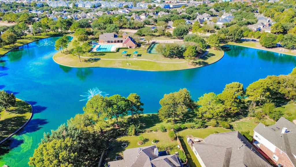 Beautiful estate home in the sought after Woodbridge Community! This stunning 4-bedroom, 3.5-bath two-story brick beauty sits on an oversized lot with a Three-car garage complemented by a porte cochere. Enjoy an elegant open floor plan with tile flooring, a dual staircase, formal living and dining areas, plus a private study. The Primary Suite offers a spa-like bath with jetted tub, separate shower, and double vanity. A chef’s dream kitchen features custom cabinets, granite countertops, a gas cooktop island, and opens to a spacious family room with high ceilings and soaring windows. Upstairs includes wood flooring, 3 secondary bedrooms, and a large game room. The oversized backyard is a peaceful retreat with lush landscaping, flagstone walkways, a covered patio, and new fencing. Recent updates include a new roof, AC system, and a foundation repair by Olshan (2016). Experience refined living close to parks, trails, and community amenities!