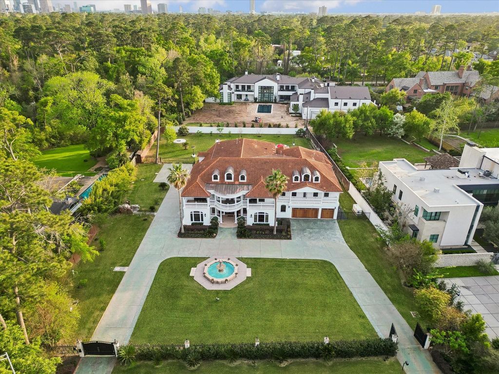 Situated on a 1.2-acre lot in the coveted Memorial area, this impressive residence was designed to accommodate large households and effortless entertaining. The expansive great room anchors the home, combining living and dining spaces beneath soaring 24-ft ceilings and dramatic statement lighting. With up to 8–9 bedrooms—including two first-floor suites with private baths—the layout offers exceptional flexibility. The home features a chef’s kitchen plus separate caterer’s kitchen, onyx and marble countertops, and marble flooring throughout the main living areas. Additional amenities include a media room, game room, fitness room, fireplaces, balconies, outdoor summer kitchen, and resort-style pool. Per seller, the home was taken to the studs and fully rebuilt in 2020, adding approximately 5,522 SF. Thoughtfully designed for both everyday living and large-scale gatherings.