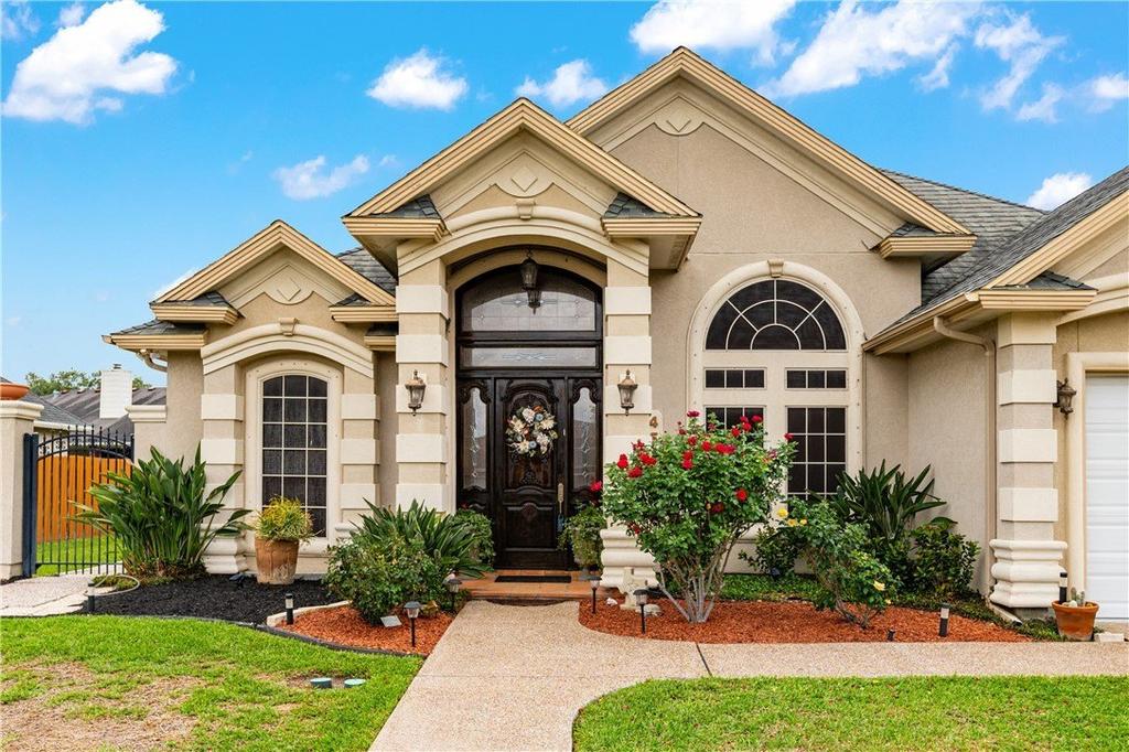 Situated in the highly sought-after Calallen Independent School District, this elegant four-bedroom, 2.5-bath residence offers refined design and exceptional craftsmanship on a desirable corner lot. From the moment you enter, you are greeted by soaring vaulted ceilings with decorative tiered detailing, complemented by extensive crown molding and intricate woodwork that carries throughout the home, creating a cohesive, upscale aesthetic. The thoughtfully designed split-bedroom floor plan provides both privacy and functionality, while tile flooring enhances the home''s clean, timeless appeal. The kitchen is designed for both everyday living and entertaining, featuring granite countertops, custom cabinetry, and ample storage, a well thought out floor plan offering both casual and formal dining areas. The primary suite is a true retreat, offering a spacious layout with a jetted soaking tub, walk-through shower with dual heads, and a distinctive walk-thru style closet complete with generous built-ins for optimal organization. Additional highlights include detailed millwork, maple cabinetry, Moen fixtures, custom hardware, and an integrated intercom system. Energy-efficient sun screens and aluminum hurricane panels provide both comfort and peace of mind. Outdoors, the professionally landscaped corner lot leads to a backyard designed for relaxation, an inviting space to unwind, entertain, or enjoy quiet evenings. A standout home offering quality craftsmanship, thoughtful design, and a prime location. Schedule your showing today!