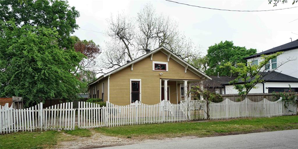 Two bedroom bungalow with character including wrap around front porch, formal entry, soaring ceilings, built in dining cabinet, and wide moldings. Parquet floors. Sunroom on back that is the length of the house. Home is ready for updates or lot could be perfect for new construction. Roof is approximately 8 yrs old and A/C is 1 yr old. Most of block is new construction. Yard is totally fenced with the back separated. Great opportunity to live in the Heights.