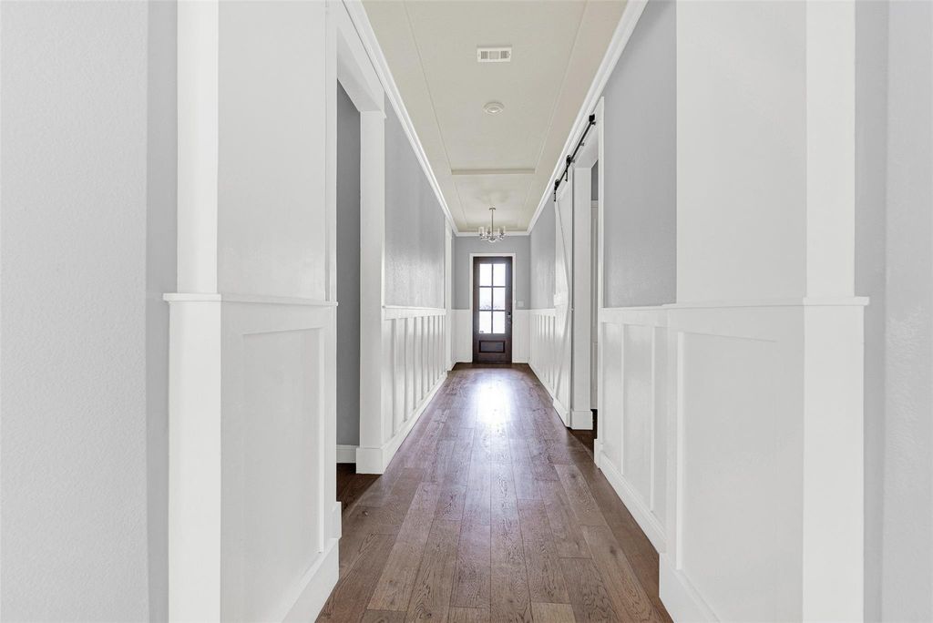 Experience Luxury Living In Mustang Lakes With This Stunning 4-Bedroom, 3-Bath Single-Story Home In Prosper, TX, Located In Highly Sought-After Prosper ISD And Zoned To Walnut Grove High School, Featuring A Move-In Ready Open-Concept Floor Plan With Engineered Wood Flooring, Crown Molding, Custom Trim Work, And Designer Shiplap Accents Throughout; The Gourmet Kitchen Showcases A Large Quartz Island, White Cabinetry With Upgraded Hardware, Double Ovens, Gas Cooktop, Under-Cabinet Lighting, And A Premium Bosch Dishwasher, While The Spacious Living Room With Gas Fireplace Flows Seamlessly Into The Dining Area And Backyard For The Ultimate Indoor-Outdoor Living Experience; A Private Home Office With French Doors Offers Flexible Space, While The Primary Suite Retreat Features A Bay Window With Backyard Views And A Spa-Inspired Bathroom With Quartz Countertops, Dual Vanities, And A Large Walk-In Shower; A Thoughtfully Designed Layout Includes A Separate Guest Or Multigenerational Suite With Private Bath And Barn Door Entry; Enjoy Resort-Style Amenities Including A Clubhouse, Fitness Center, Multiple Pools, Parks, And Walking Trails, Plus HOA-Maintained Front Yard Landscaping For Low-Maintenance Living, All Conveniently Located Near Shopping, Dining, And Major Highways—Offering The Perfect Blend Of North Dallas Luxury, Comfort, And Convenience.