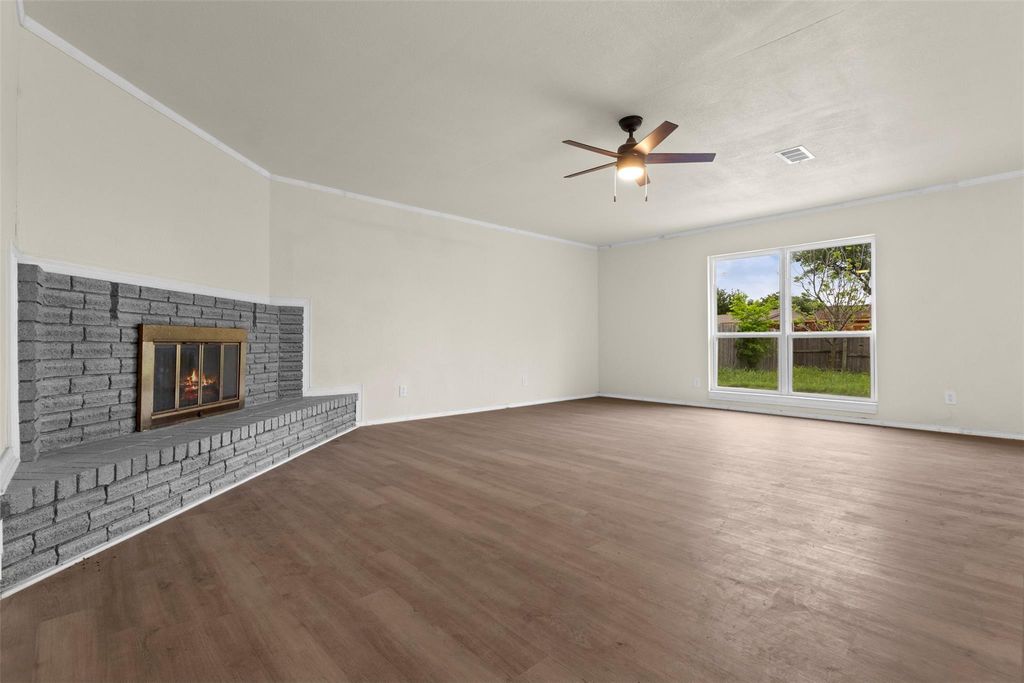 Welcome Home to 5618 Briarcrest Drive, Garland, TX! This freshly updated 3-bedroom, 2-bath gem offers 1,398 square feet of thoughtfully designed living space. Step inside to discover an inviting open floor plan featuring low-maintenance laminate flooring and a brick wood-burning fireplace that sets the perfect ambiance for cozy evenings. The Kitchen and both baths have been beautifully updated with modern finishes. Garage was converted into a second living area-flex space. Situated on a generous lot in a well-established neighborhood. You'll also appreciate the proximity to Lakeview Centennial High School, while outdoor enthusiasts can explore nearby John M Hayes Park at Rosehill for weekend recreation. Whether you're a first-time buyer or looking to downsize, this move-in-ready home delivers charm, updates, and a great location. Schedule your showing today!
