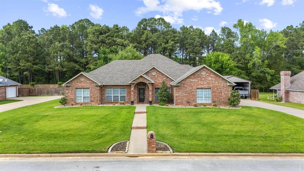 Stunning 4/2 on just under half an acre with a dedicated office in Longview ISD with Gilmer address... including a gunite pool, privacy-fenced backyard, 800 square foot studio/workshop, and 2-car carport in addition to the 2-car garage? Yes, please! This home has it all- huge primary bedroom with fireplace, its own access to backyard, his and her walk-in closets (hers with custom upgrades!), dual sinks and huge custom shower. The other 3 bedrooms are on the other side of the large den with fireplace and high ceilings. The kitchen has granite countertops, a wonderful breakfast nook, and a pantry that has been efficiently upgraded. The bright and airy dining room connects to the kitchen and the entryway. The office has plenty of natural light and its own door to the patio and backyard. And the workshop/studio? SO many possibilities, with tons of storage, vaulted ceilings, and thoughtfully constructed custom counters- AND has a 2-ton mini-split to keep you comfortable. The backyard oasis is ready for summertime, with the covered patio, pool, and ample backyard space for play. This home is lacking absolutely nothing! (the garage even has its own climate control!)