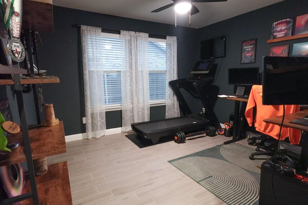 Welcome home to 1913 Cookes Lane! This spacious home offers room for the whole family with an open floorplan featuring 6 bedrooms and 3 full baths. Inside, you’ll love the beautifully painted interior, highlighted by eye-catching accent walls that add warmth and character throughout. The heart of the home is the large kitchen island with granite countertops—perfect for hosting summer gatherings or everyday living. Every bedroom is thoughtfully equipped with a ceiling fan and cordless blinds to keep you comfortable year-round. All bathrooms also feature granite countertops, and the primary bath includes a built-in vanity area complete with an outlet for added convenience. Step outside to your covered patio and take in peaceful pond views. With a ceiling fan for comfort and a TV that conveys with the home, this space is ideal for relaxing or entertaining in any season. This home is truly move-in ready, with major appliances included—washer, dryer, refrigerator, and stove all convey. Located in a welcoming community, residents enjoy access to a pool and playground, offering even more opportunities for relaxation and recreation. Conveniently situated just 5 miles from the Chisholm Trail Parkway, you’ll have easy access to DFW shopping and dining while still enjoying the charm of small-town living. With generous space and inviting indoor-outdoor living, this home is ready to welcome its next owners.