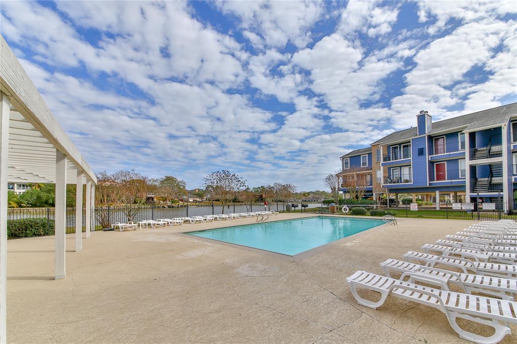 Great updated top floor two bedroom 2 bath condo in a waterfront community on Egret Bay. Split floor plan with spacious rooms. Primary room has an en-suite bathroom with a shower/tub combo and large walk-in closet. Large secondary bathroom with room for your full sized washer/dryer. Covered outside balcony to enjoy with access from primary room. Unit comes with 2 covered parking spaces and two storage rooms. One storage room located off your balcony, one downstairs in the carport area. Two pools located in the complex with waterfront views. Picnic tables and bbq pits through out the community to enjoy. small Boat/jet ski launch. Great location close to many restaurants and shops. Easy access to 45 and nasa pkwy. Available immediately. Apply today for this awesome place!