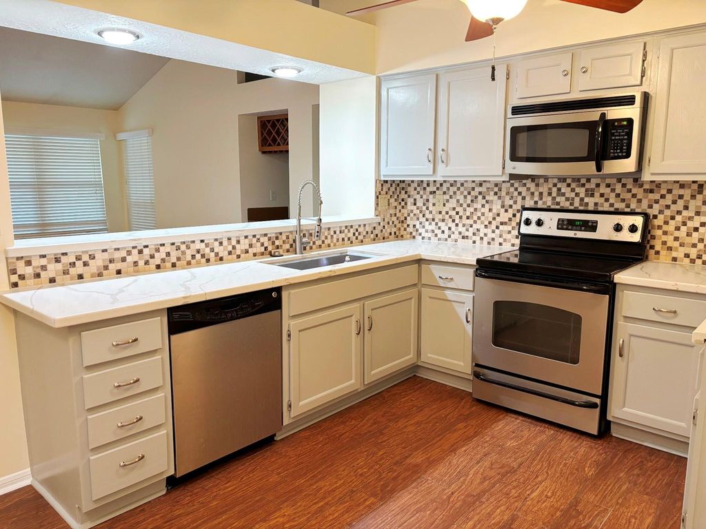This two bedroom, two bath patio home is a spacious 1510 sf with a study and oversized family room. There is also a generous amount of outdoor space including covered and uncovered patio and yard. The kitchen is nice-sized and is open to the family room with views of the yard. Eating areas include breakfast area, breakfast bar and a formal dining area in the family room, all of which is accommodating for gatherings. Wood-look tile is throughout and this home has been freshly painted. The main ensuite includes double sinks, an updated shower and two separate closets. Located in the highly desired University Green community there are numerous pools available to residents as well as tennis courts. Close to shopping and easy freeway access. Zoned to the highly acclaimed CCISD schools.