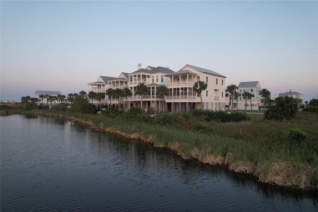 Beautifully furnished 4 bedroom, 3 bathroom home located along Beachtown’s picturesque lagoons. Home features an elevator, high ceilings, large island kitchen, built-in bunk beds and three large porches with Azek decking. A short walk to the community's town center, swimming pool, and beach. Home is built to Fortified (150 MPH) construction standards by the predominant builder in the community and features the latest in energy efficient construction methods. Breathtaking views of the lagoons, nature preserve, and Galveston Bay.