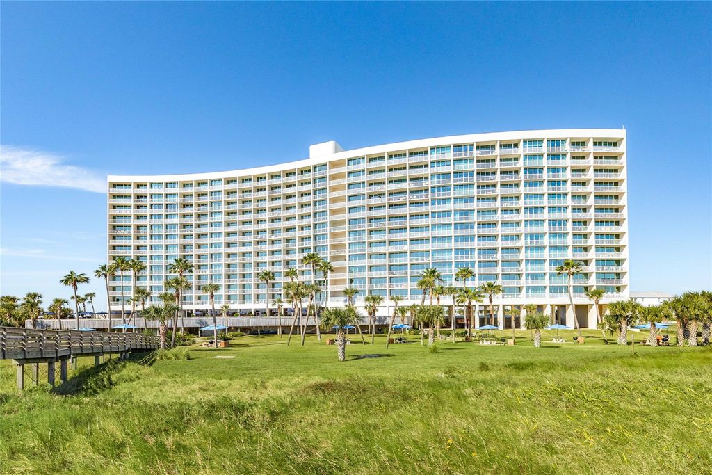 Coastal elegance describes this spacious 2 bedroom 2 bath Galvestonian Condo. Wall to wall Beachfront views as you first enter this nicely maintained condo. Recently installed inside and outside Air & condensing units. Large living area w/floor to ceiling windows & doors leading to balcony. Kitchen opens to dining & living which provides great family time & entertaining. Enjoy the spacious balcony for morning sunrises & coffee to evening sunsets & cold beverages. Condo location is right over the pool to keep watch on your loved ones. Primary Bedroom has floor to ceiling & wall to wall doors w/private balcony for enjoying beachfront views & morning sunrises. Fully equipped kitchen w/appliances, breakfast bar & tons of cabinets. This condo comes fully furnished. In the Galvestonian rental program. Galvestonian amenities: pool, tennis/pickleball, outdoor living space with grills, fitness center, concierge, front desk, elevators, covered parking & more.
