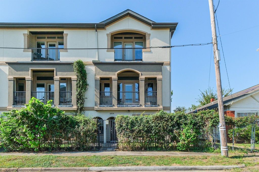 Stunning townhome with remarkable views! Excellent location close to Midtown, Minute Maid Park, and everything downtown has to offer. 3 bedrooms all with en suite bathrooms. Large living area on second floor with wall of windows. Modern kitchen with large breakfast bar. Nice balcony off of the living area. Perfect for entertaining! Nice half bath located on second floor. Refrigerator, washer and dryer stay. Third floor has large primary suite and bath. Oversized shower and soaker tub with multiple walk in closets! A third bedroom also located on the third floor with en suite bath. Very nice complex with plenty of parking for guests just outside the front gate. You will love this up and coming area!