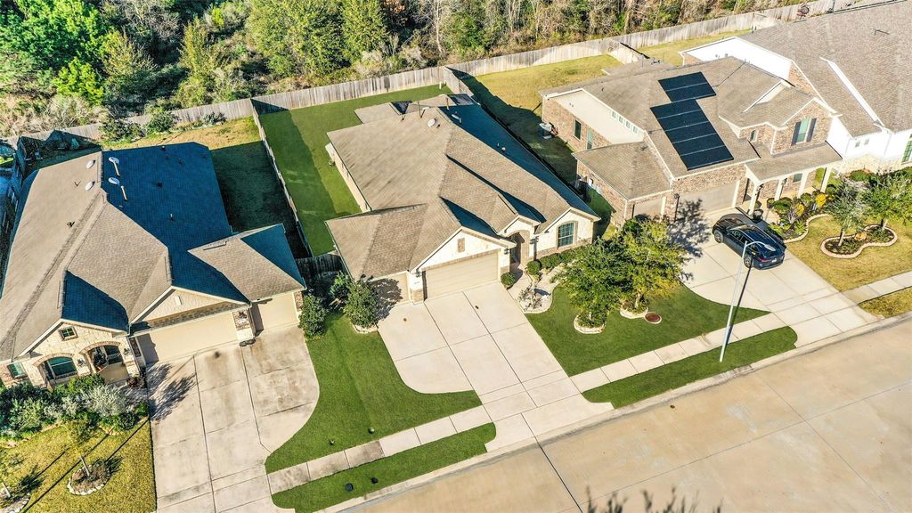 Beautiful one story home located in the Fair Meadows community in Cypress. This inviting 4 bedroom home offers the perfect blend of comfort & functionality, featuring a private home office with French doors, a formal dining room, and an open-concept layout designed for everyday living & entertaining. The kitchen boasts stainless steel appliances, white cabinetry with contemporary hardware, a breakfast nook, and a breakfast bar with upgraded lighting above. Wood flooring extends throughout the common areas. The primary suite offers a spacious bath complete with with a dual-sink granite vanity, soaking tub, oversized frameless glass shower, and a large walk-in closet. Step outside to enjoy the upgraded covered and extended patio with a gas firepit, extra privacy as there are no direct back neighbors, and a 3 car garage that has direct access to the backyard. Ideally located just minutes from 290, 99, popular restaurants & shopping, and acclaimed Cy Fair ISD schools. Don't miss this one!