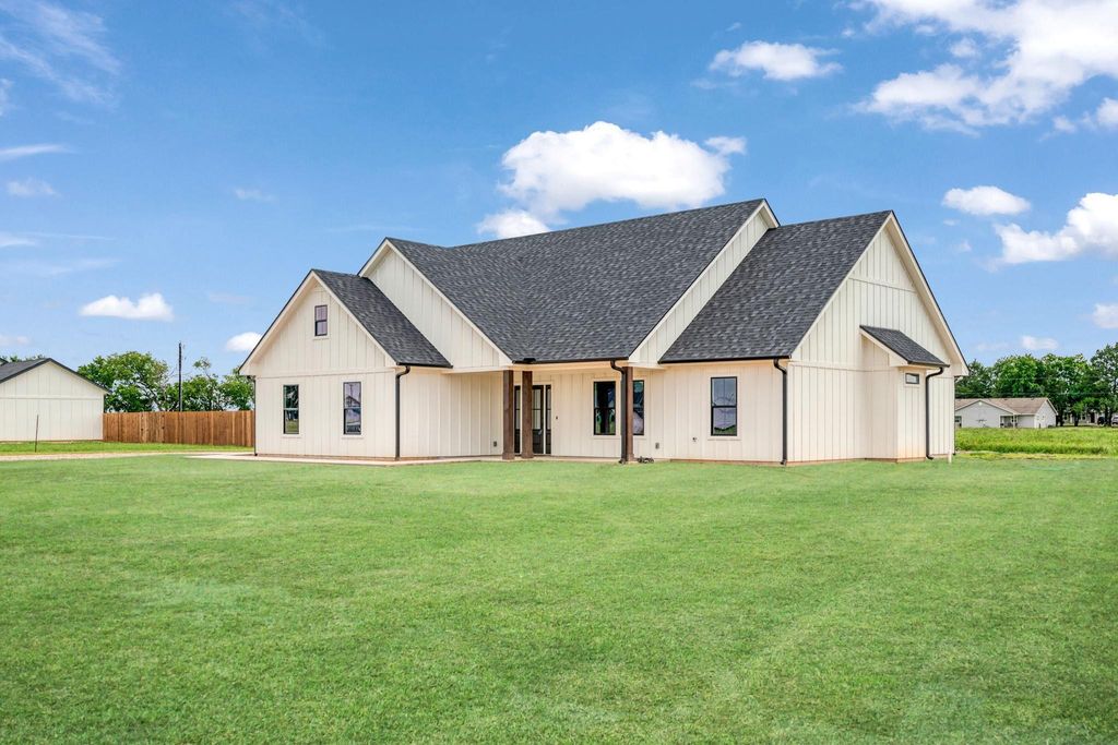 Welcome to this beautifully crafted new construction home on just over half an acre in Paris, TX! This 3-bedroom, 2-bathroom home offers an open-concept layout with designer finishes throughout. Enjoy cooking in the spacious kitchen featuring granite countertops, custom cabinetry, a large island and modern fixtures. The primary suite includes a double vanity, walk-in shower and plenty of natural light. Luxury vinyl plank flooring flows through the home, complementing the clean, modern aesthetic. Additional highlights include a mudroom with built-in storage, sleek black hardware and a striking living room accent wall. Outside, you'll find fresh landscaping in progress, a large yard perfect for outdoor activities and a covered patio ready for relaxing evenings. Located near the airport and in North Lamar ISD. Don't miss this stylish, move-in-ready home with a peaceful country setting just minutes from town.