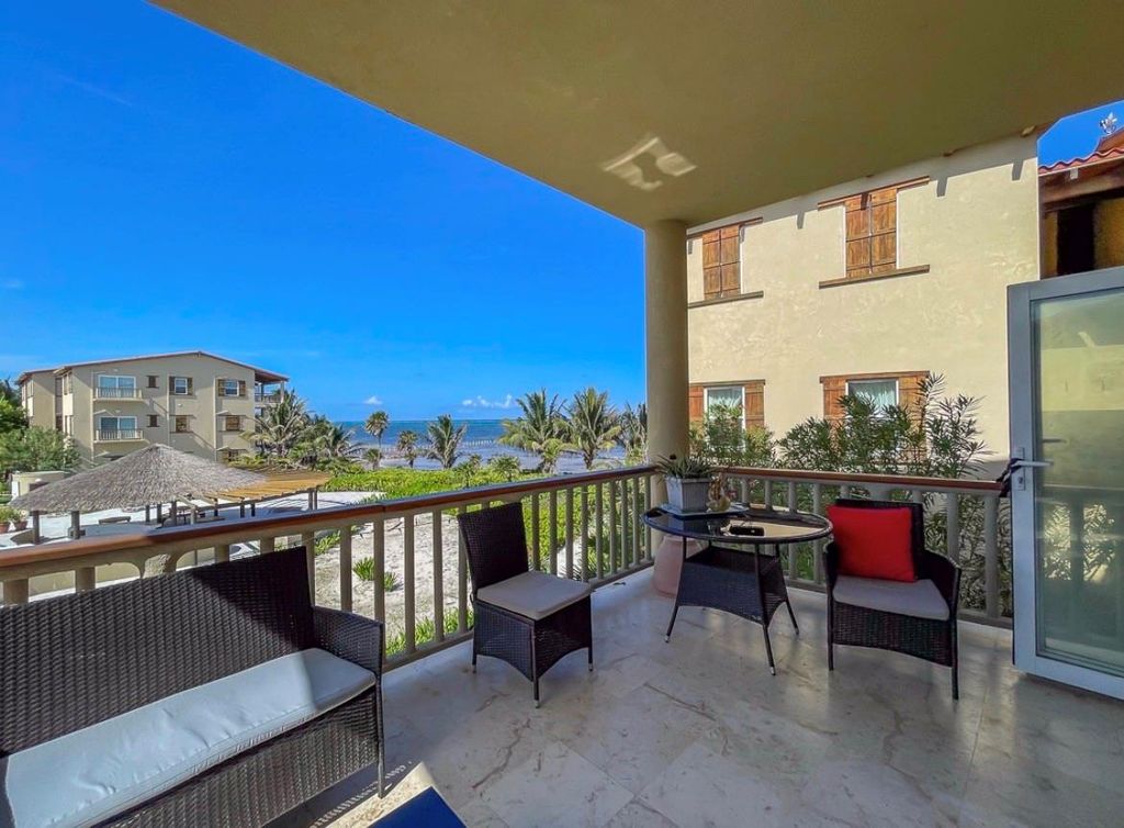 2hr flight from Houston Tx This seaview condo in downtown San Pedro Belize offers spectacular views of the Caribbean Sea and the Belize Barrier Reef from both a private patio and a spacious rooftop balcony. With 2 bedrooms and 2 modern bathrooms, this turnkey condo blends luxury with island convenience. YES! The unit is fully furnished with island-inspired décor and features beautiful hardwood floors throughout. Its open-concept living area creates a warm, inviting atmosphere perfect for relaxing or entertaining. . Its prime location in downtown San Pedro makes it attractive for both personal enjoyment and rental demand. Central location with walking access to shops, restaurants, and services. Living here means being steps away from everything you need—restaurants, bars, tour companies, banks, and grocery stores. You’ll enjoy the perfect mix of Caribbean charm and urban convenience while waking up daily to sea breezes and stunning water views.