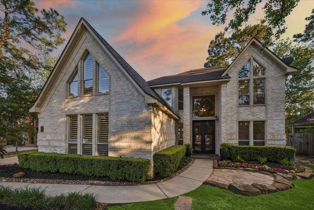 Beautiful Leigh Meyer Custom home perfect for entertaining. Incredible views of natural Woodlands environment, backing to serene pond. Backyard oasis features inviting pool and spa, outdoor kitchen, extended covered patio and lush landscaping. Wonderful floor plan offers private study, two living areas, as well as formal and casual dining. Primary bedroom located downstairs with spa like bath and easy access to backyard amenities. Three additional bedrooms, oversized game room and additional flex space could be used as ensuite playroom, secondary office or art studio. Decorative touches throughout include wood flooring in main living areas and primary bedroom, wrought iron balusters on main staircase with wood treads, wine storage, wood beams, high ceilings, decorative built-ins and dual fireplace are just a few of the many wonderful features this home has to offer. This is truly one of a kind and a must see!