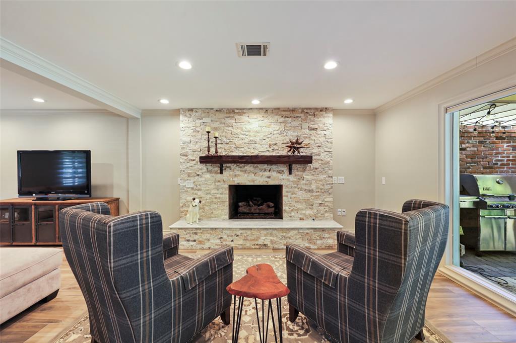 This distinctive home is neatly tucked on a tree shaded cul-de-sac. Upon entry, a generously sized foyer is flanked by a large home office w/gorgeous built ins and a huge living space which reveals a wall of windows across the back & opens to breakfast area, sitting area and an eye-opening kitchen. The kitchen is a chef's dream & affords ample counter & storage space w/a butler’s pantry & walk-in pantry. Also, you will love the breakfast bar, Bosch double ovens, 5 burner gas cooktop & vent hood. The solid wood soft closing drawers, modern cabinets w/sleek, frosted glass fronts & under cabinet lighting complement the white Quartz counter tops & subway backsplash. A large island with real walnut countertops & barstool seating centers this stylish space. The primary bedroom, other 3 bedrooms & recently updated bathrooms are upstairs. Back bedroom has a large second floor terrace w/spiral staircase winding down to the beautiful backyard and 2 car garage w/double wide driveway.