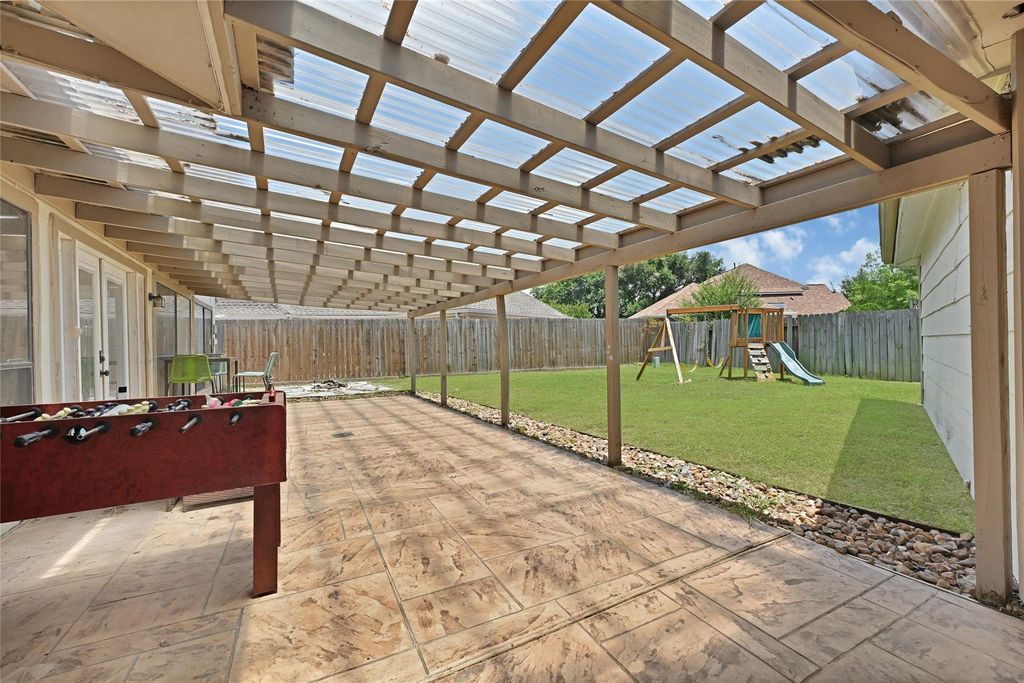 4-bedroom, 2.5 bath home located in the highly sought after Nottingham County subdivision. The functional layout features space perfect for families or those needing extra space. Well maintained on a spacious lot with a detached garage. Inside find a grand entryway, soaring ceilings and an open-concept layout. The living and dining areas are divided by a double-sides gas fireplace, with a wet bar nearby. A covered patio is perfect for family gatherings and outdoor living. Zoned to the highly acclaimed Nottingham Country Elementary and Taylor High School (Katy ISD). This home truly blends convenience, lifestyle and comfort. Ready for your personal updates and vision. Ideal opportunity for buyers looking to add their own style and improvements.