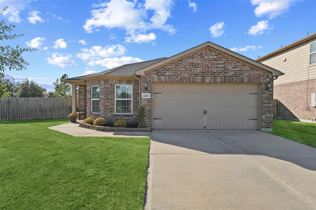Welcome home to clean lines, a fresh color palette, and a great floorplan! Lots of living, both inside and out. The arrangement is open and yet still separate enough for comfort. Wide-plank floors, granite countertops, beamed ceilings, and interesting architectural touches abound. The living room is huge and opens to the kitchen and a home office off to the side tucked behind French doors. The primary suite boasts a garden tub and separate glassed-in shower. Outdoors, entertain on the ample back porch adjoining the back yard that is big enough for a pool. The house also has gutters installed on the house which don't come standard on the home in the neighborhood. Garage Floor is non-slip epoxy. Front and back sprinkler system for that year round green grass!