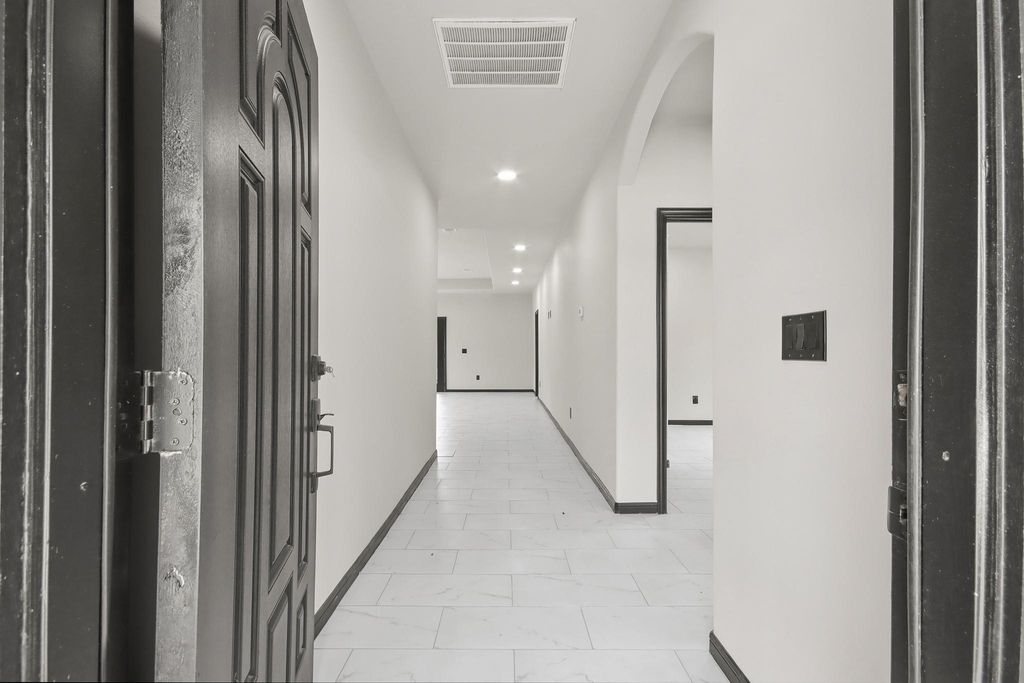 Tucked away in the peaceful surroundings of Goodrich, this property offers the perfect blend of privacy and convenience with easy access to nearby shopping, dining, and major roadways. A long, extended driveway sets the tone, welcoming you into your own private retreat surrounded by natural beauty and water views. Inside, tile flooring flows seamlessly throughout, complemented by modern black-and-white accents that create a clean, timeless aesthetic. The kitchen is designed for both function and style, featuring a spacious island, abundant cabinetry, and a walk-in pantry, all opening to a bright breakfast nook filled with natural light. The living area showcases elegant tray ceilings, while French doors provide effortless access to the expansive covered patio—ideal for relaxing or entertaining while enjoying the spacious yard and wooded backdrop. Experience comfort, space, and serenity all in one—an opportunity to enjoy quiet living with everyday conveniences just a short drive away.
