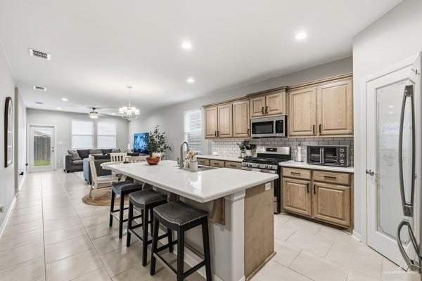 Stunning 3-bedroom home with a versatile flex room-perfect for a home office, gym, or playroom-located in the highly desirable Tres Lagos community. This home stands out with sleek porcelain tile flooring throughout, a bright open-concept layout, and modern finishes that feel clean and move-in ready. The kitchen is designed for both function and style, featuring bar seating, a spacious pantry, and included appliances-microwave, dishwasher, and gas stove. The primary suite offers a spa-like feel with a large walk-in shower and double vanity, while secondary bedrooms are well-sized and filled with natural light. Step outside to a spacious backyard with plenty of room to entertain, relax, or add your personal touch. Enjoy resort-style living with access to parks, pools, trails, and lakes-all just minutes from Texas A&M McAllen and IDEA Public Schools.