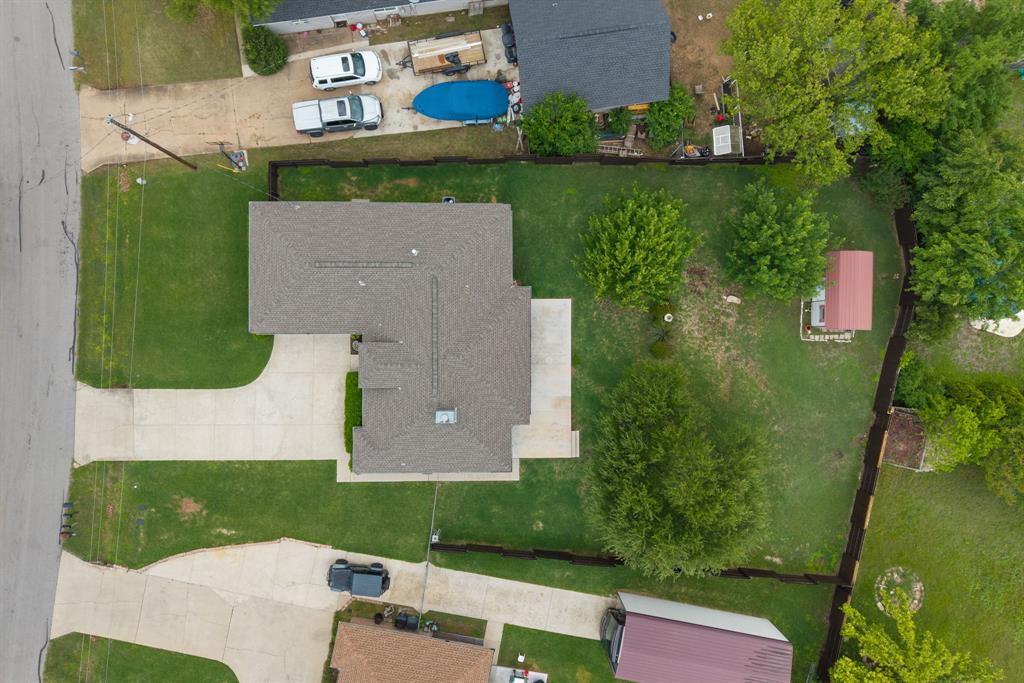 Welcome to the home you've been waiting for — and the freedom that comes with it. Nestled on a generous 1/3-acre lot shaded by stunning mature trees and carrying no HOA, this thoughtfully designed single-story gem delivers the space, style, and ease of living that today's buyers are searching for. Step inside and feel the difference. An open floor plan draws you through sun-filled living spaces anchored by a gorgeous corner fireplace — the perfect spot for cool Texas evenings. The kitchen flows effortlessly into the living area and features a breakfast bar ideal for morning coffee or casual entertaining. When it's time to retreat, your primary suite delivers. Enjoy a beautifully upgraded ensuite bath with a walk-in shower — and when you're ready to unwind outside, simply step through your private door directly onto the screened-in porch. No bugs. Just peaceful evenings surrounded by mature trees and soft twilight lighting across your backyard. Speaking of that backyard — it's a showstopper. An expansive freshly repoured patio, a fully screened-in porch, lush landscaping and a large storage shed. The oversized side-entry garage adds incredible curb appeal with upgraded lighting and a rear-access door to the backyard. Built to last: 100% masonry exterior (3 sides brick, 1 side Hardi-plank), a fire hydrant at the street — a potential insurance advantage — and major upgrades already done: new 4-ton AC/heat with added return vents (2025), dual-pane windows (2025), roof (2021), repoured driveway and patio, gas water heater, stove & microwave (2018), and natural gas hookup for the dryer. Both bathrooms tastefully upgraded. Single-story living — no HOA, no stairs, no compromises. This gem will not last long.