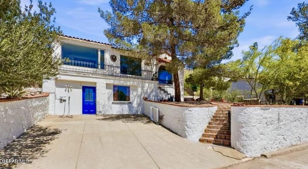 Beautiful, recently updated Spanish Villa in Kern Place, nestled in the Franklin Mountain foothills with breathtaking views of Mexico, New Mexico, Mount Cristo Rey + city lights. Enter through a nail-studded door into a sunlit, open layout featuring refinished oak hardwood floors + abundant natural light. The enhanced kitchen offers granite countertops, stainless steel appliances, induction cooktop, convention-air fry, microwave + a custom tile mural inspired by the Virgin de Guadalupe + Diego Rivera. This 4 bedroom, 3 bath home includes an A-frame living room with high ceilings + a charming wood-burning stove, formal dining room, sunroom with endless views, laundry + ample additional storage. The primary suite with en-suite bath features a walk-in closet, skylight + jetted tub. Enjoy a beautifully terraced backyard with a 12-ft observation deck + dining platform equipped with electricity + water. Xeriscaped yard. Lot size 12,175 sq ft.