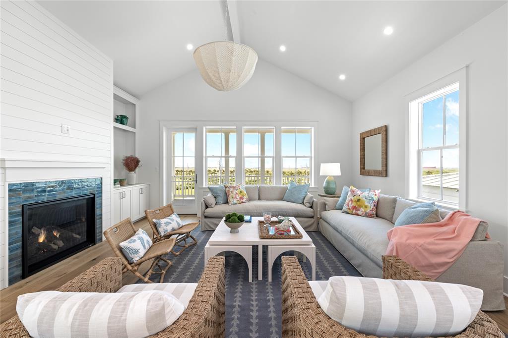 New Construction 4-bedroom, 3.5 bathroom located in Beachtown’s East Village. Home is located just steps away from the dune-walkover to the beach. Take in the serene views of Galveston Bay and the East End Nature Preserve from the porches. This residence offers an elevator, upside-down floorpan, cathedral ceiling, wide-plank engineered wood flooring, gas fireplace, built-in bunk beds, Thermador appliances, and Azek decking. Designed and built to Fortified construction standards. May Completion.